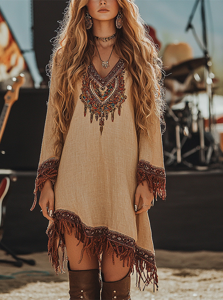 2025跨境欧美大码音乐节复古休闲荒原风民族风复古派对摇滚流苏