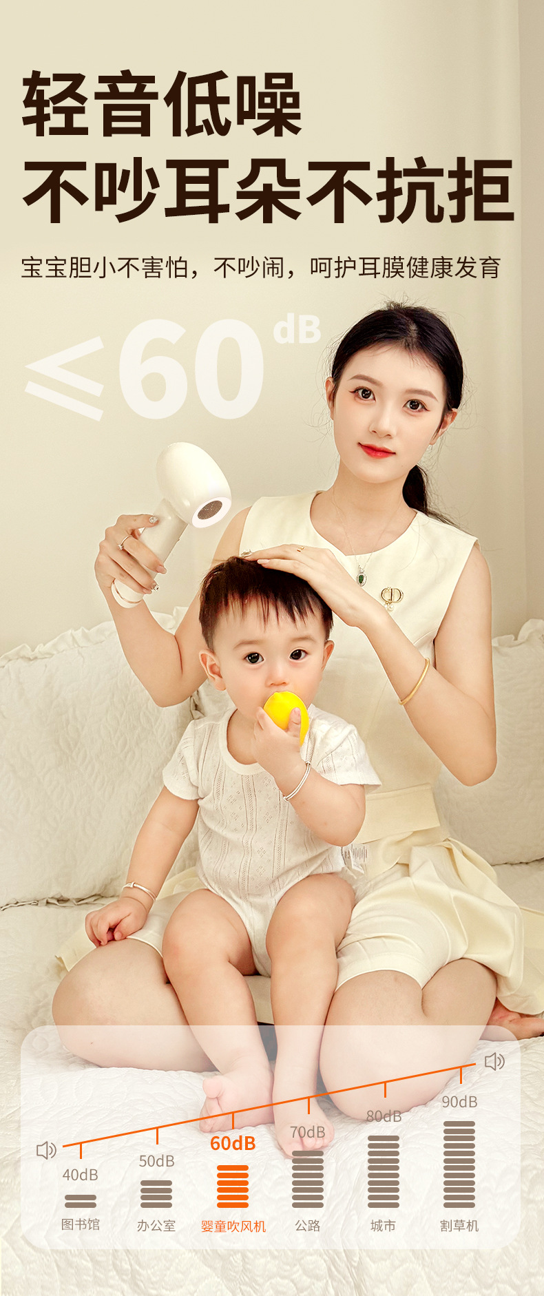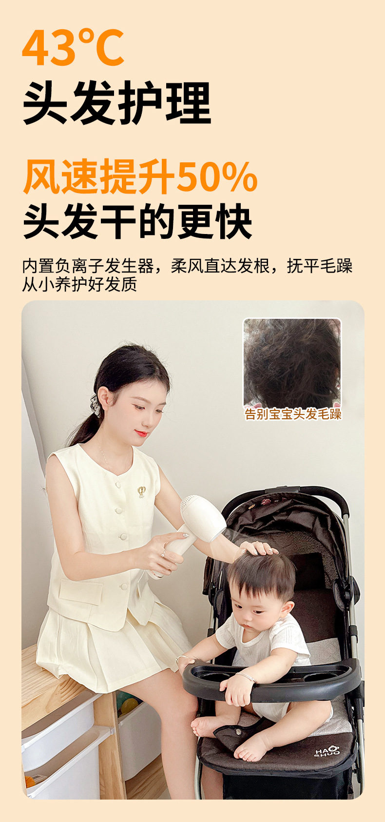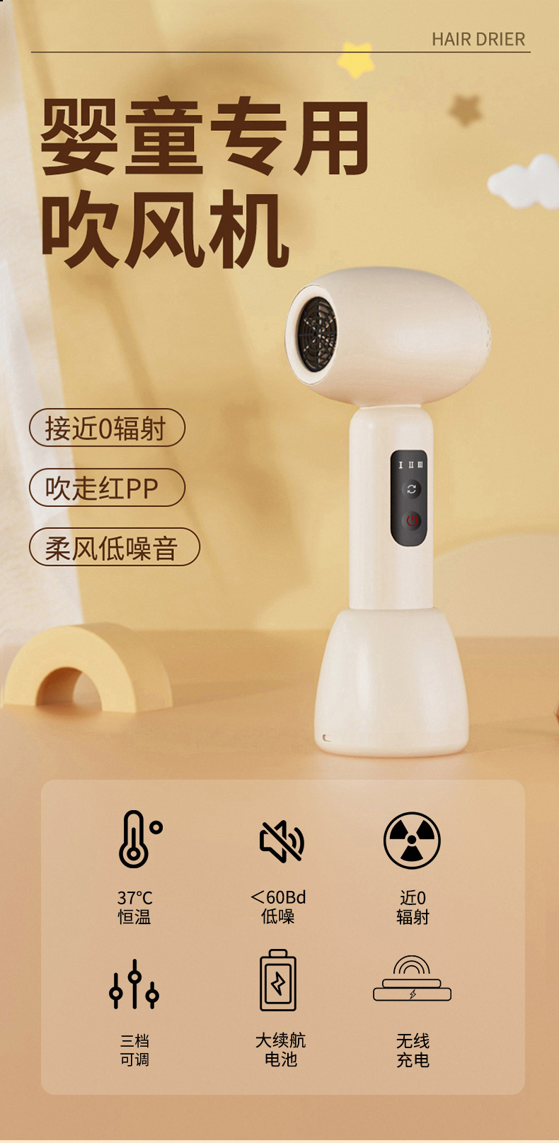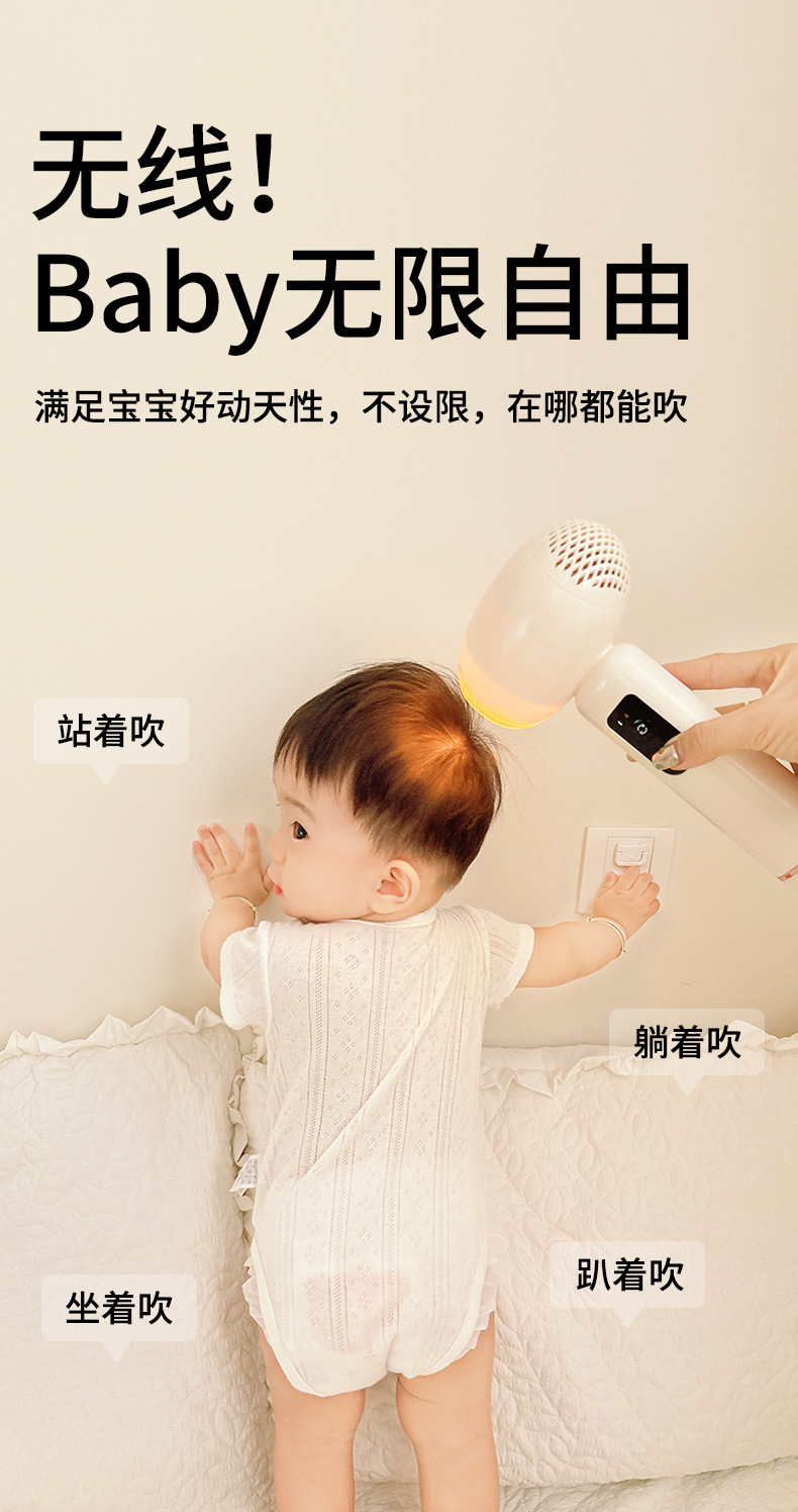 婴幼儿无线吹风机超静音低辐射柔风护发吹屁屁宝宝电吹风静音便携