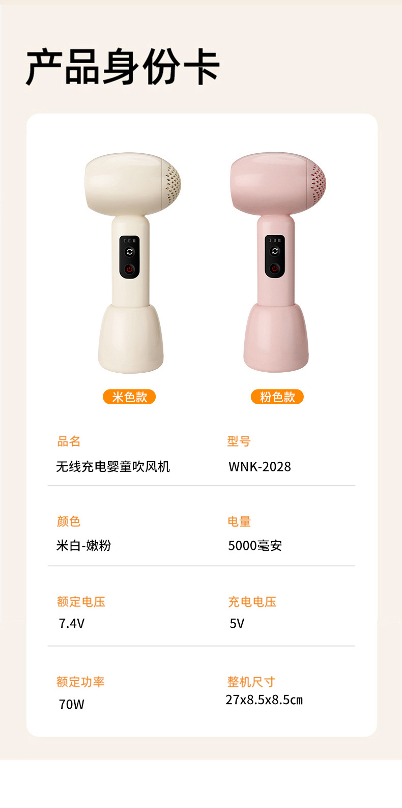 婴幼儿无线吹风机低噪音低辐射柔风护发吹屁屁宝宝吹风儿童吹风筒