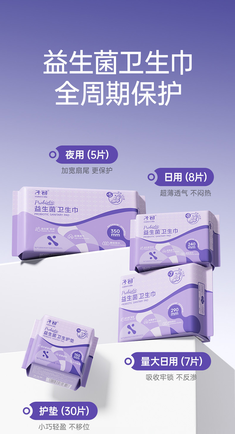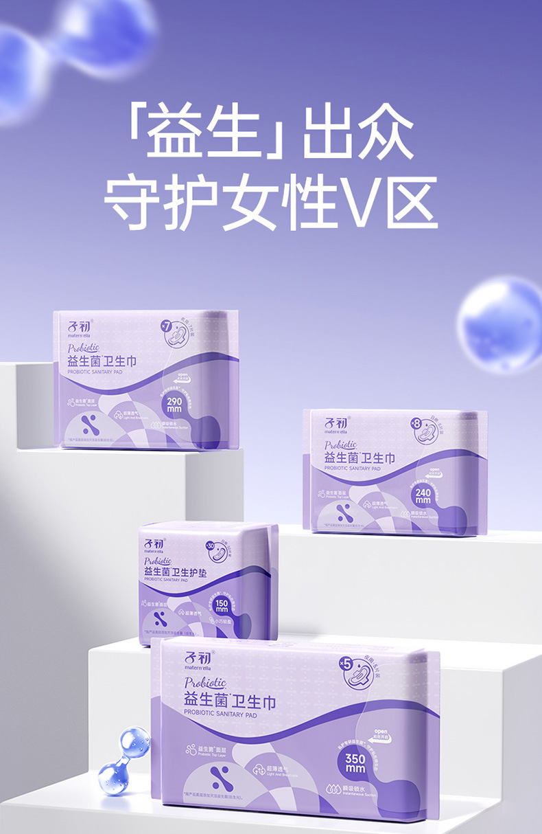 子初蚕丝益生菌卫生巾姨妈巾生理期防侧漏一次性超薄透气姨妈巾