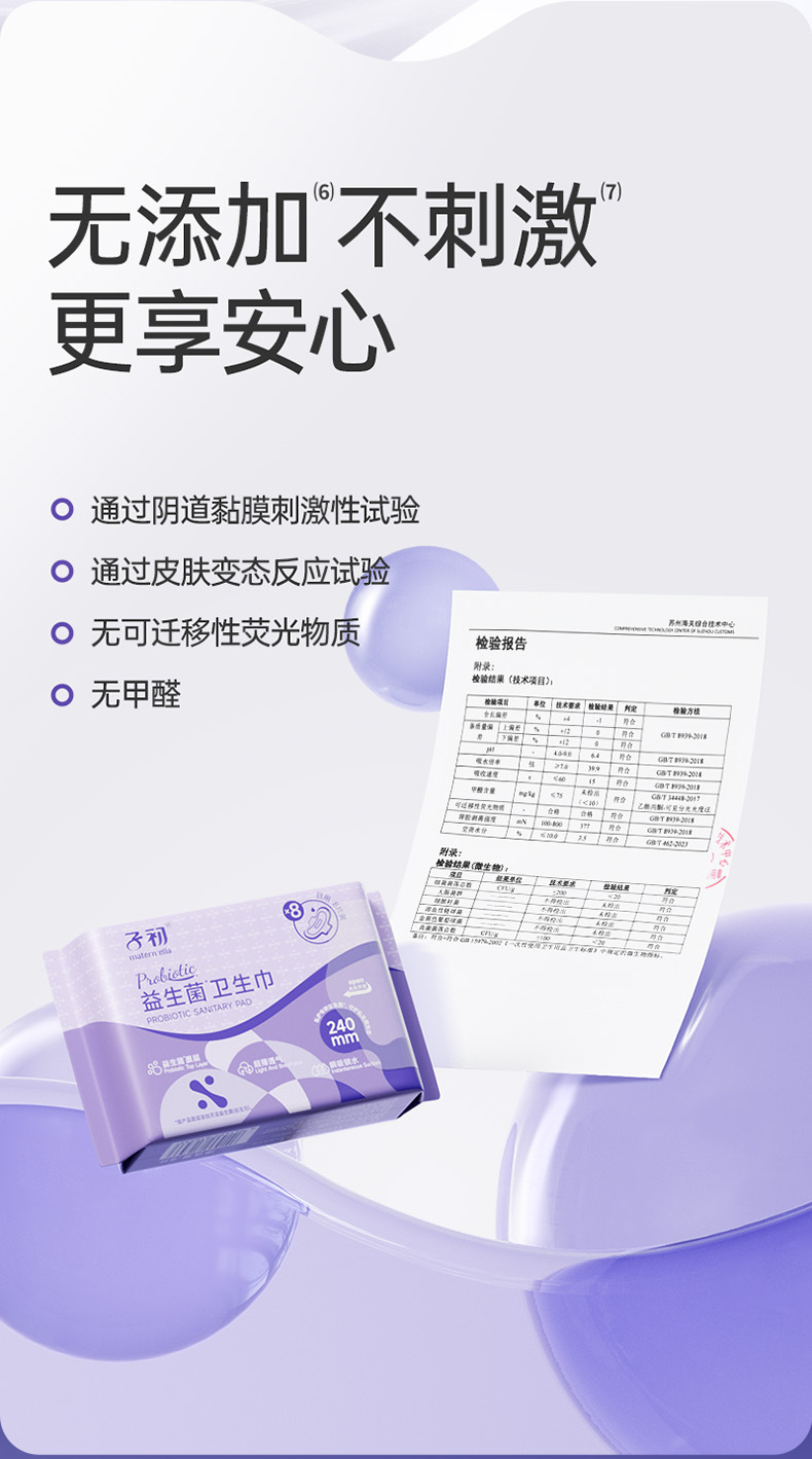 子初プロバイオティクス生理用ナプキン、超薄型で通気性があり、乾燥した使用感の女の子用生理用ナプキン、昼夜兼用、肌に優しい生理用ナプキン