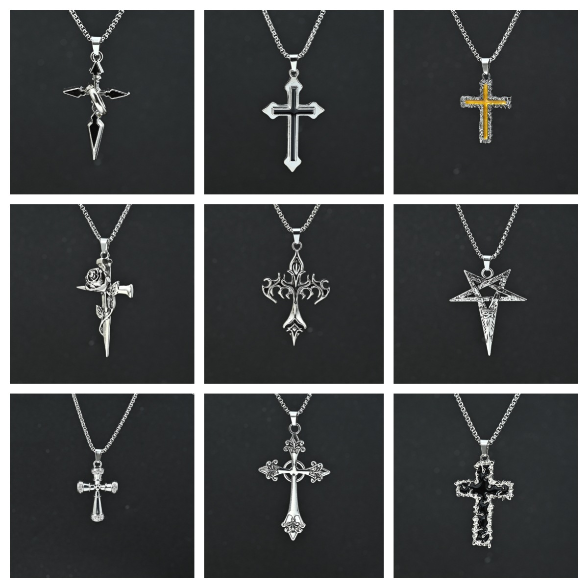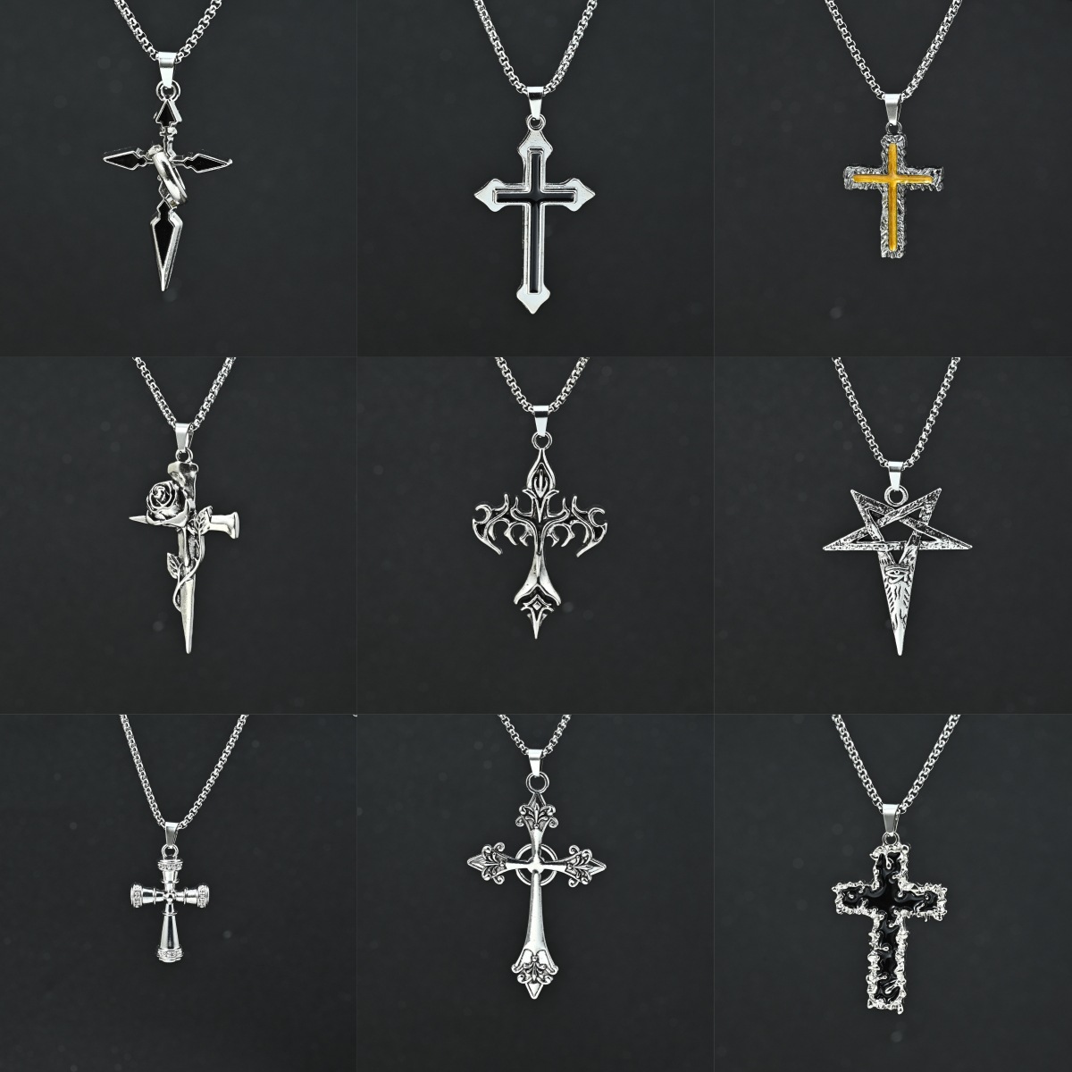 颜色 1#熔岩十字架,2#环绕十字架,3#双色十字架,4#雕花十字架,5#玫瑰十字架,6#长五星,7#烈火十字架,8#黄色十字架,9#皇冠十字架,10#s十字架毛衣链