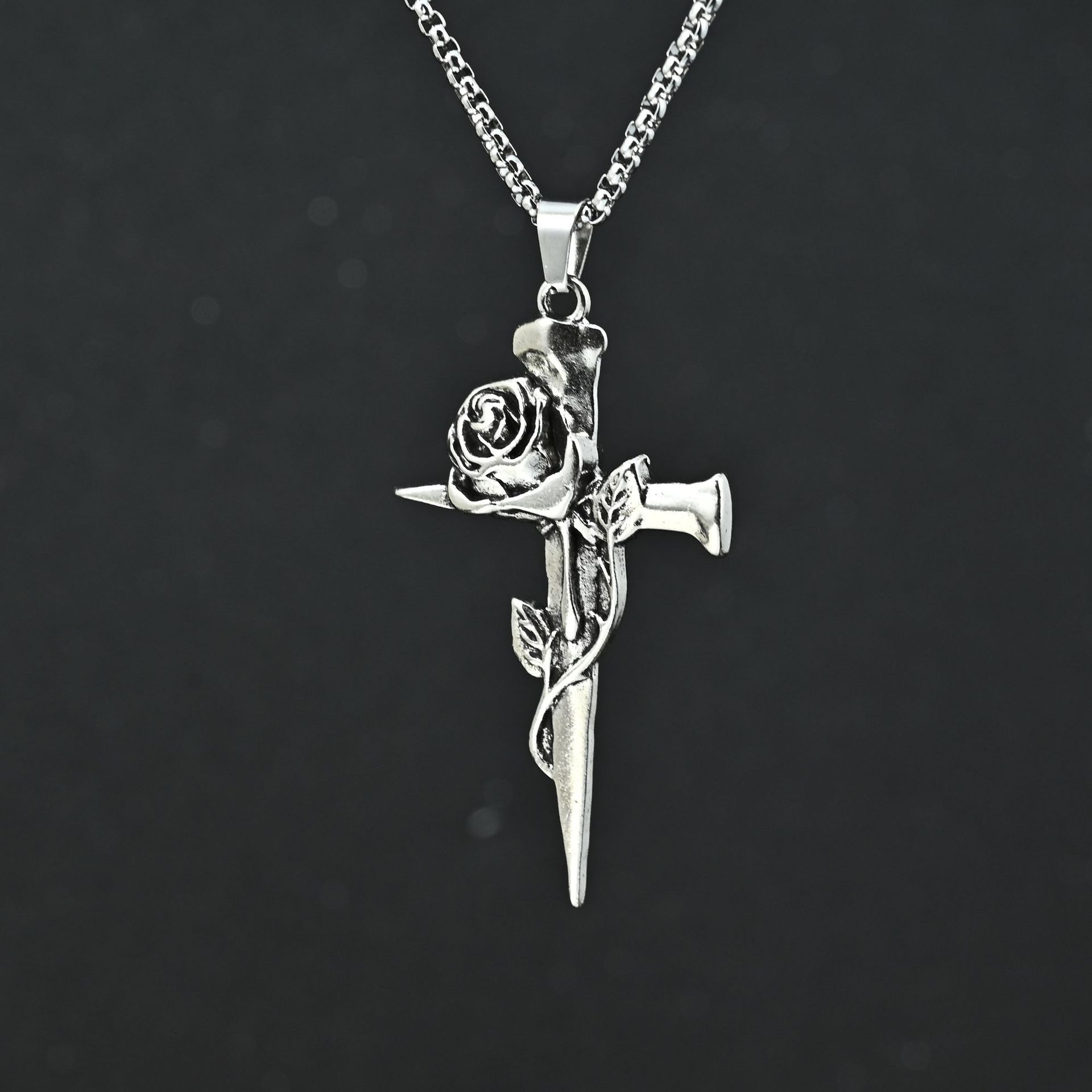 ヒップホップセーターチェーンペンダントとげクロスネックレスメンズブラックハイエンドストリートパンクスタイルネックレス男性と女性用