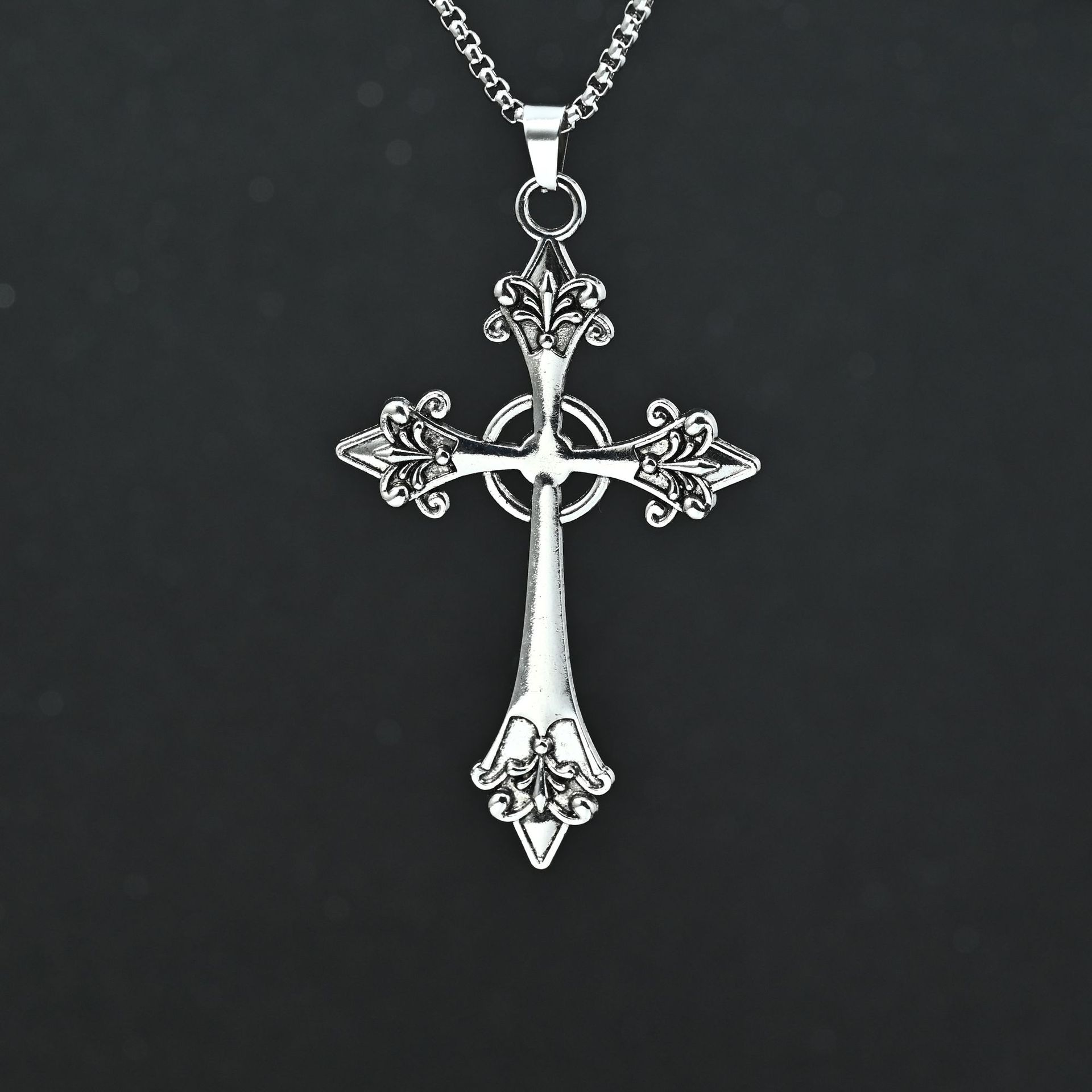 2024熱売対外貿易ステンレスネックレス炎復古クロス合金鋳造男性ペンダントネックレスアクセサリー