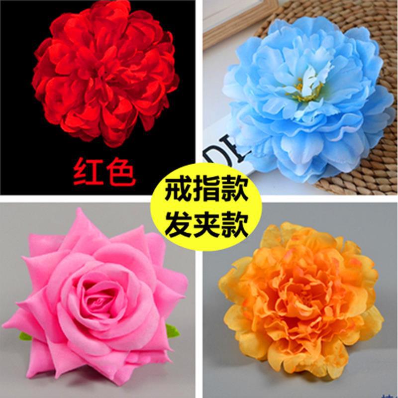 花妖舞指輪大紅薔薇ピンク牡丹花六級唱花皮筋頭花手首道具指花