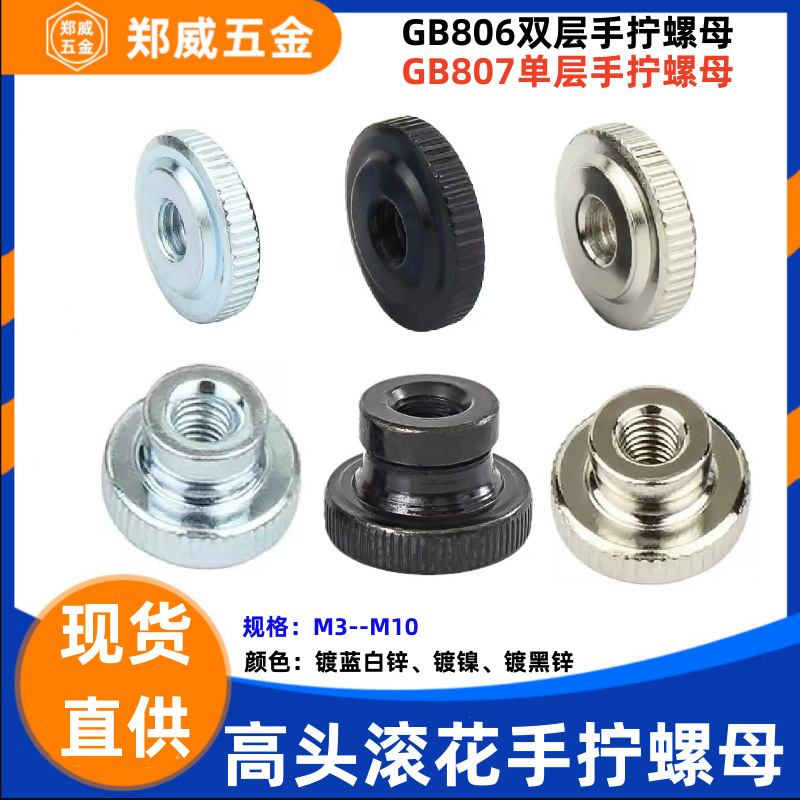 GB806镀镍镀锌黑色高头滚花手拧螺母大头双层螺丝帽M3M4M5M6M8M10