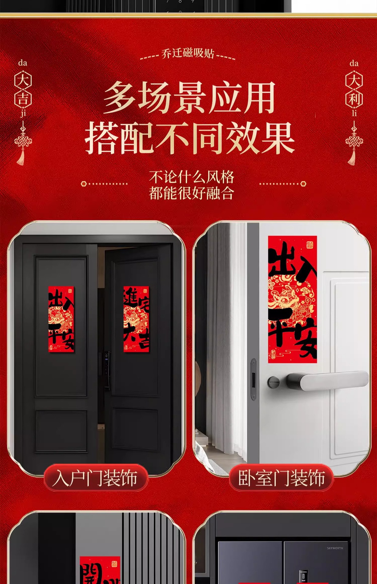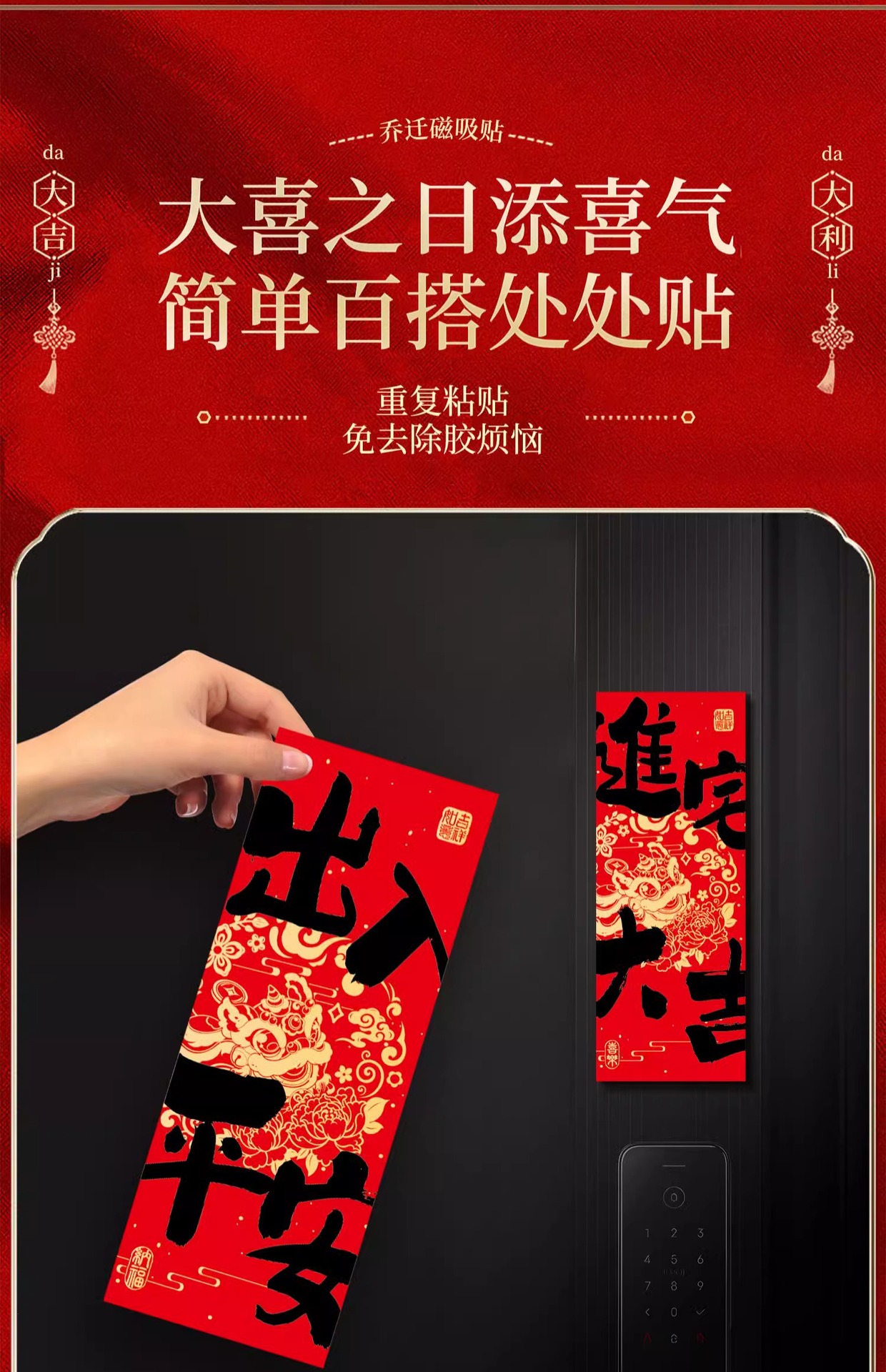 乔迁之喜装饰磁吸对联大门春联福字门贴新居搬家入宅户门布置用品
