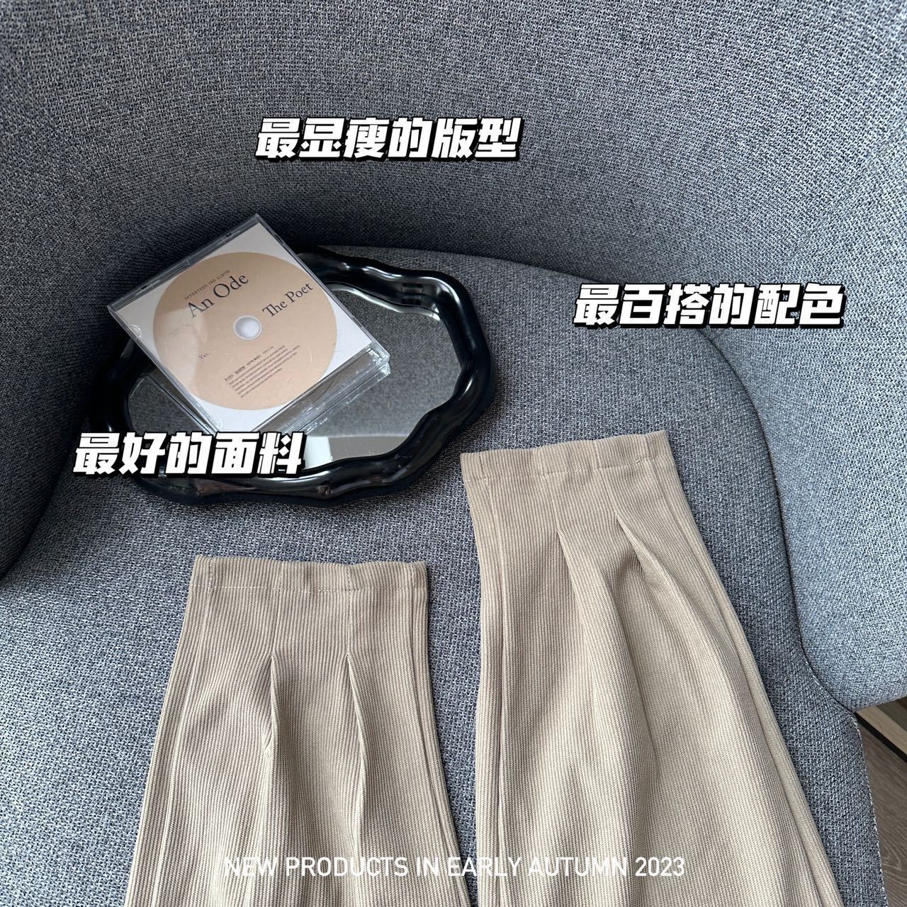 夏の新型の怠惰な風の筋の理感の広い足のズボンの女性の日系の高い腰のゆったりしているカジュアルなズボンのまっすぐな筒のモップの乳芙のズボン