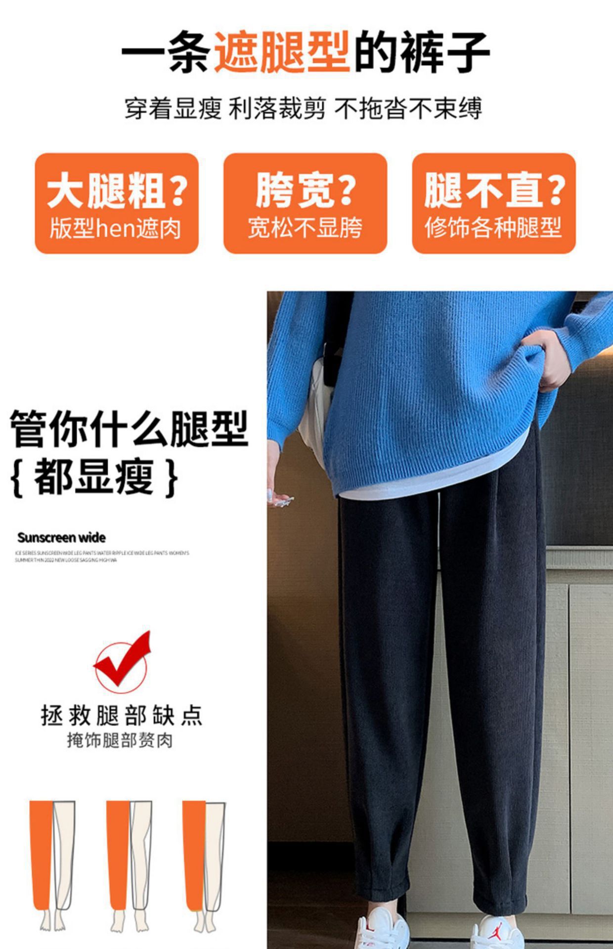 2025 夏薄いアイスシルク速乾性日焼け止めハーレムパンツ女性のルーズ痩身カジュアルストレート 9 点スポーツパンツ