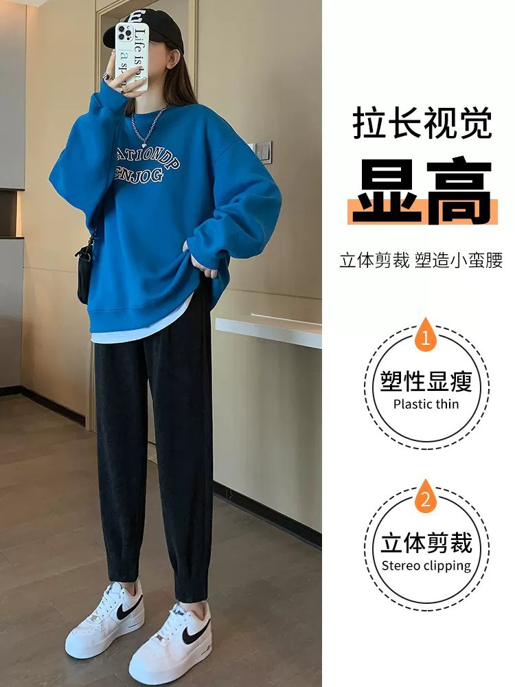 小个子秋冬新款哈伦裤运动裤女加厚束脚裤宽松百搭卫裤萝卜九分裤