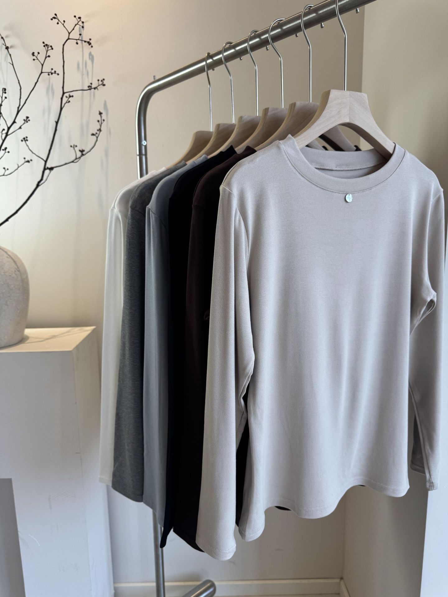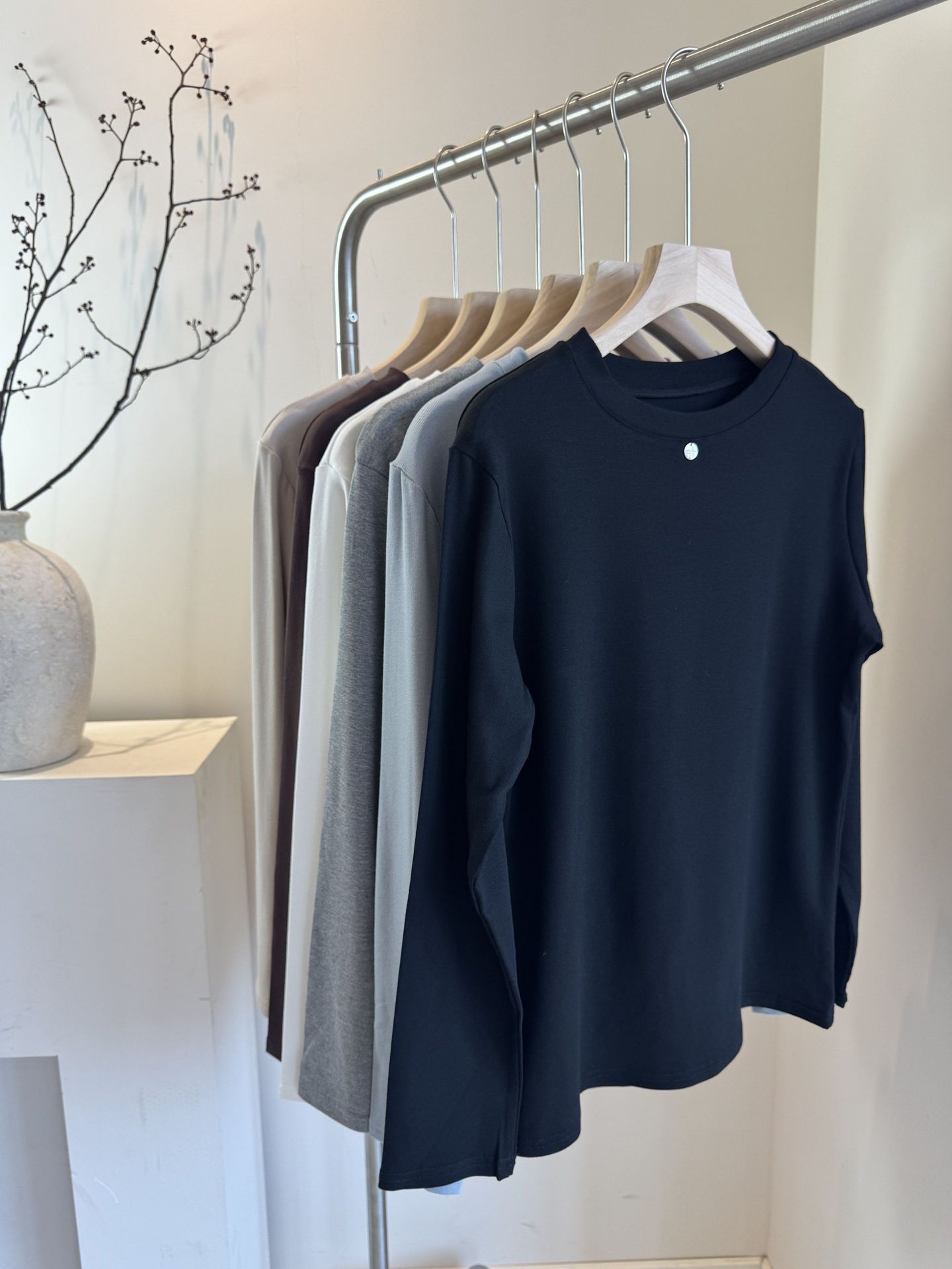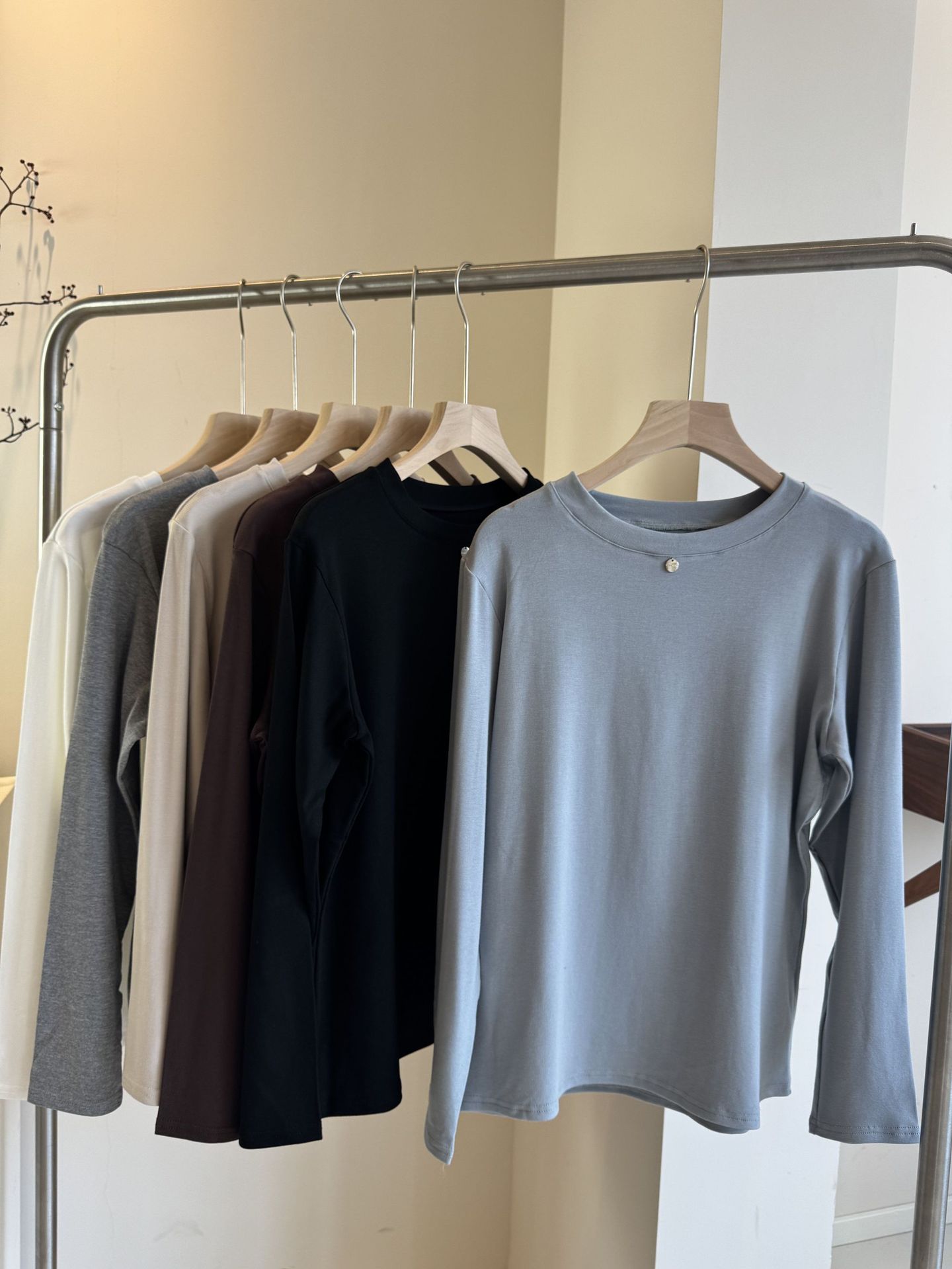 秋冬季新品金片磨毛保暖圆领长袖T恤女基础百搭高品质纯色打底衫