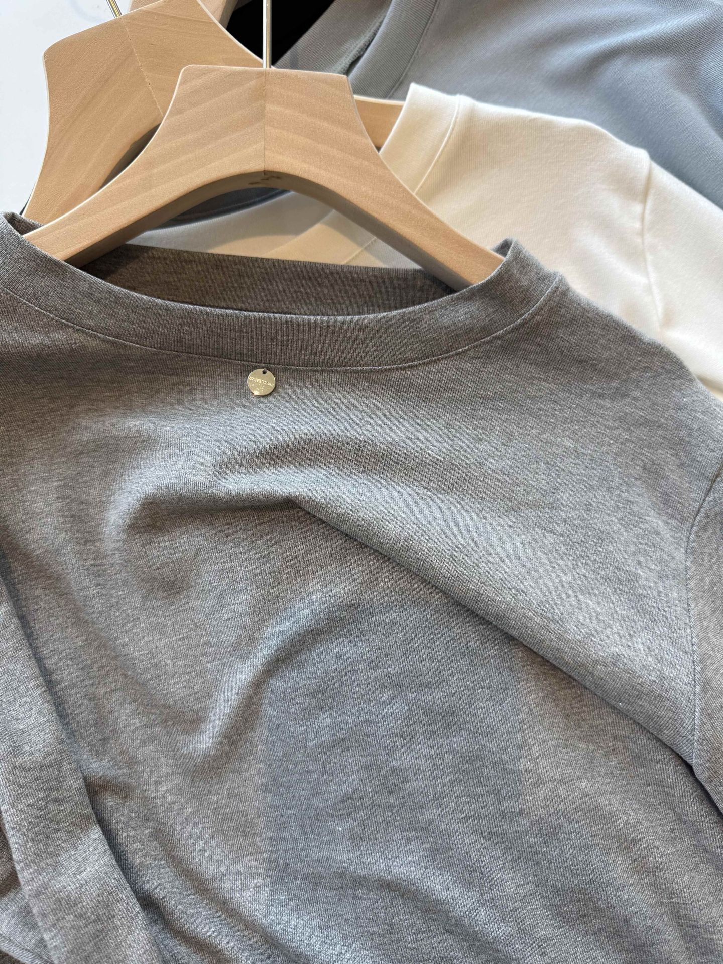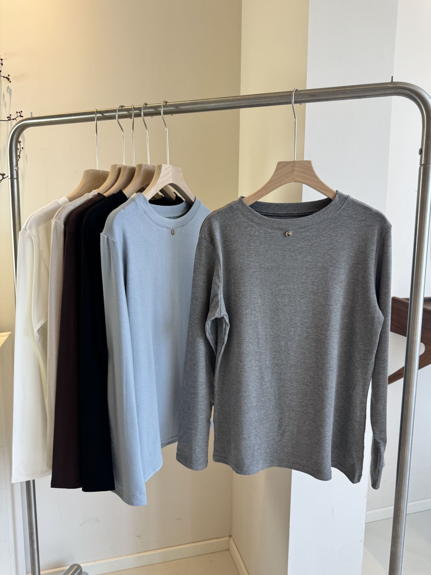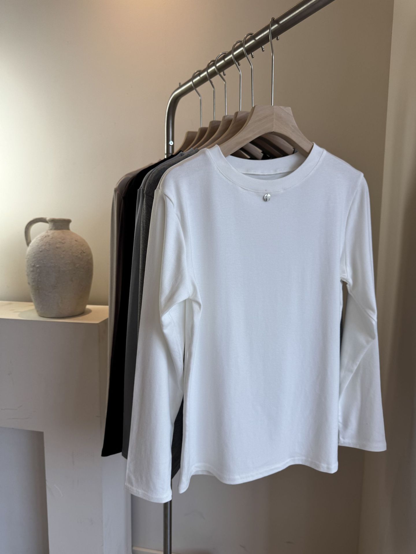 秋冬季新品金片磨毛保暖圆领长袖T恤女基础百搭高品质纯色打底衫