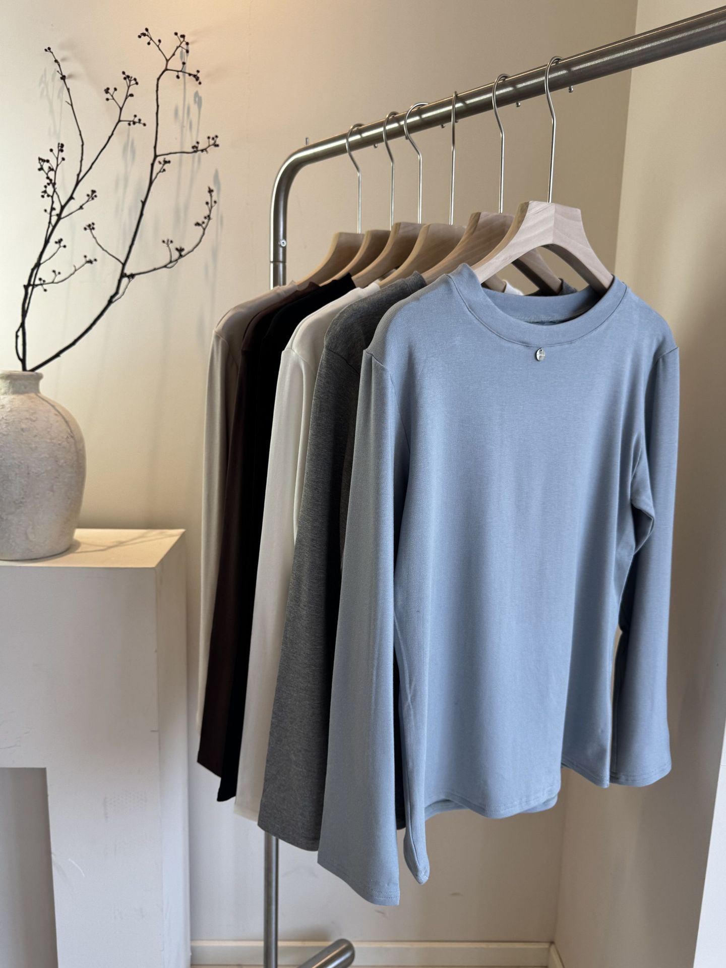 2025秋冬新款慕斯羊绒软糯打底衫女士内搭双面磨毛小立领长袖上衣