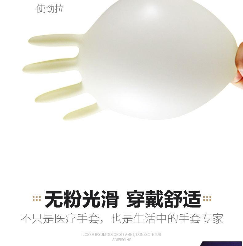工厂使用9寸乳胶手套工业用光面无粉净化一次性乳胶手套无尘室