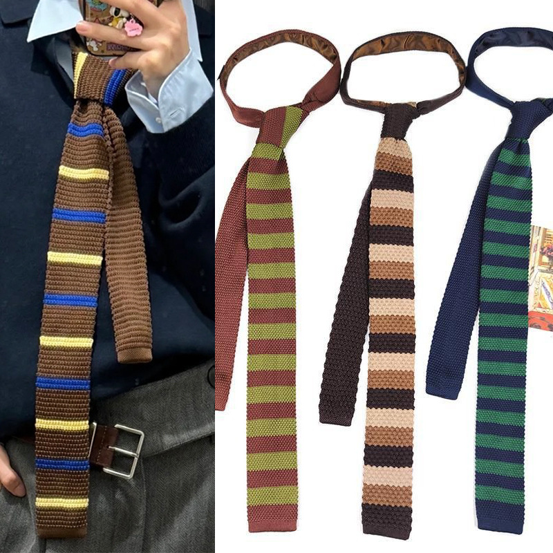 爆款复古针织领带毛线平角手打腰带装饰女条纹搭配牛仔裤藏青咖棕