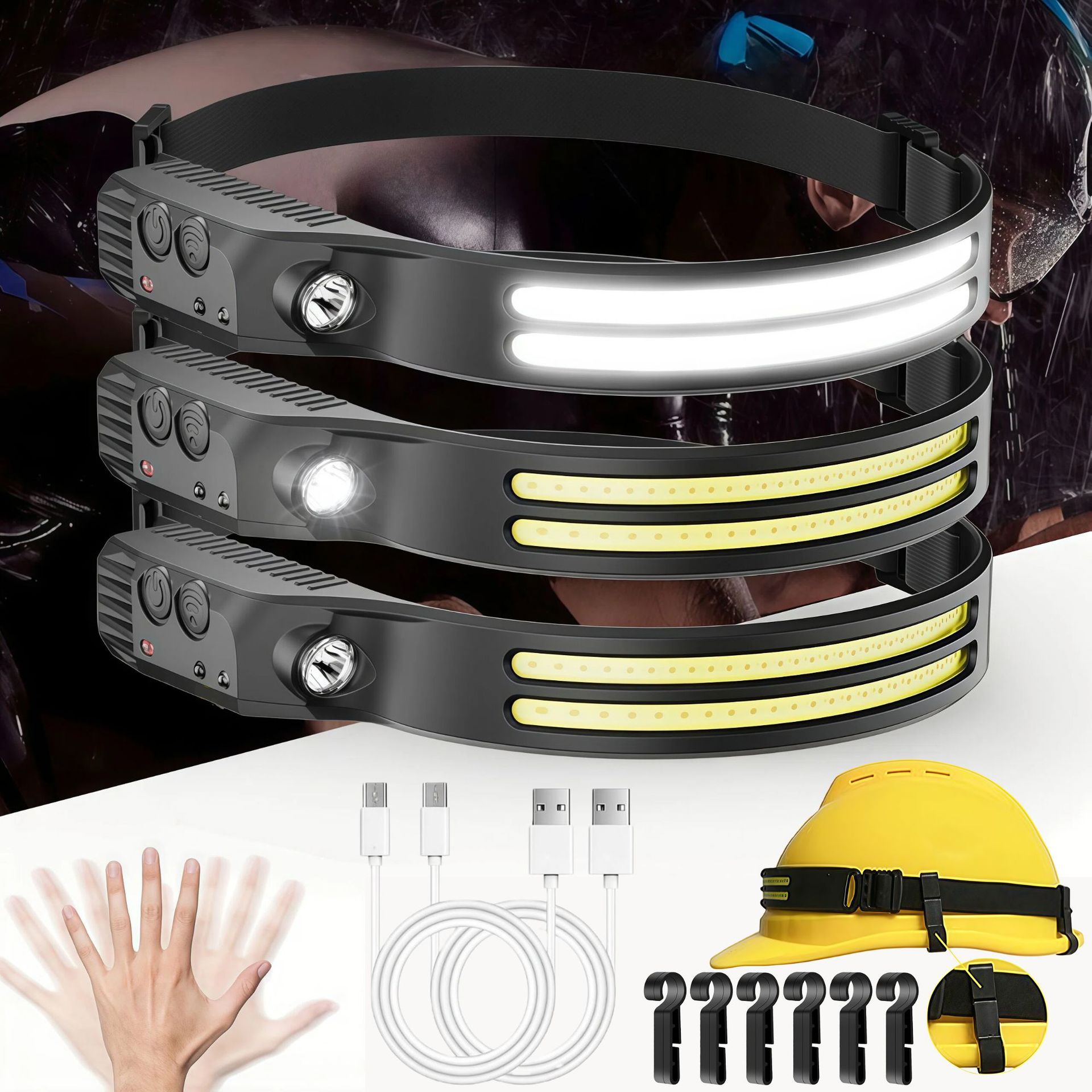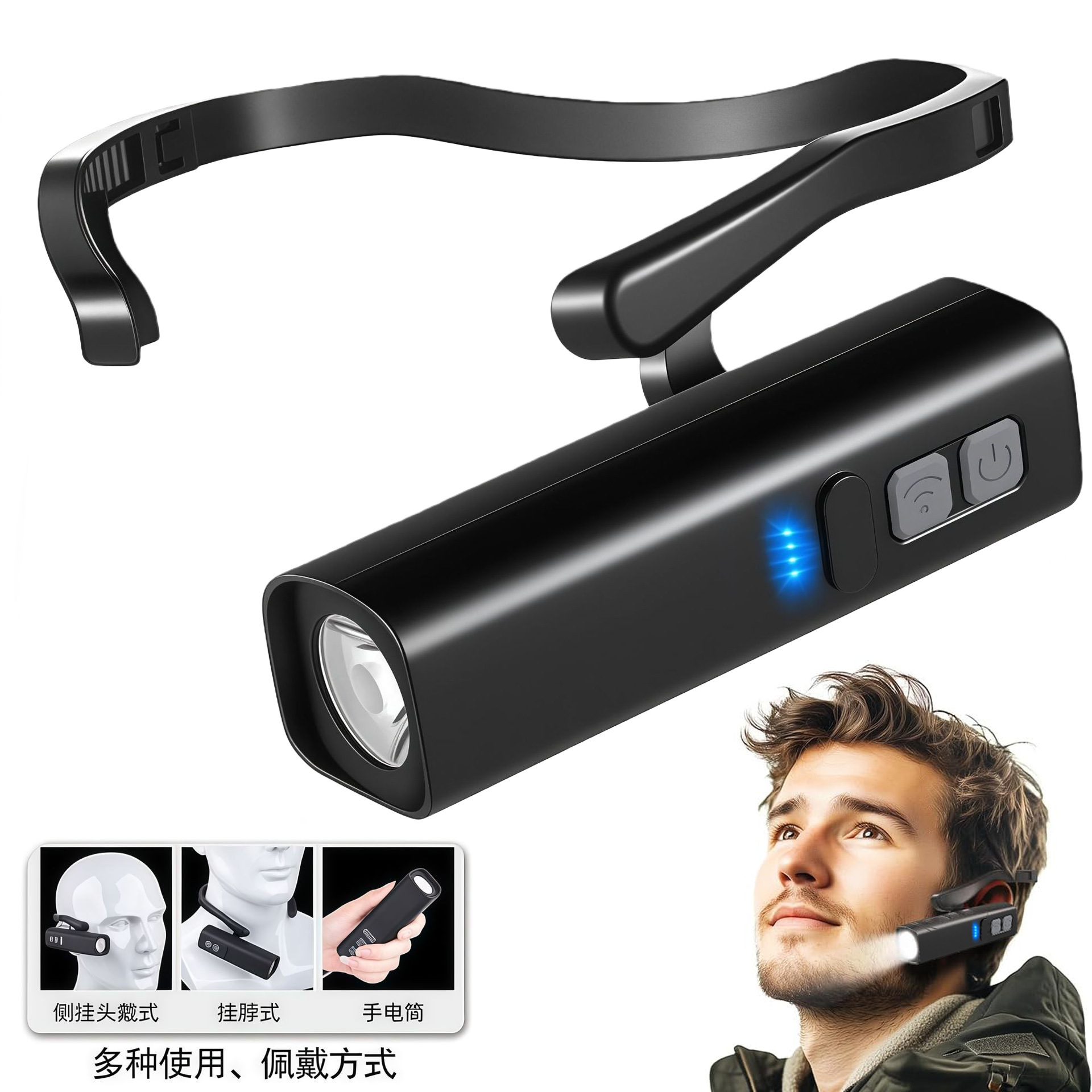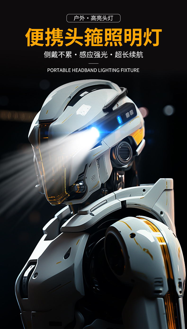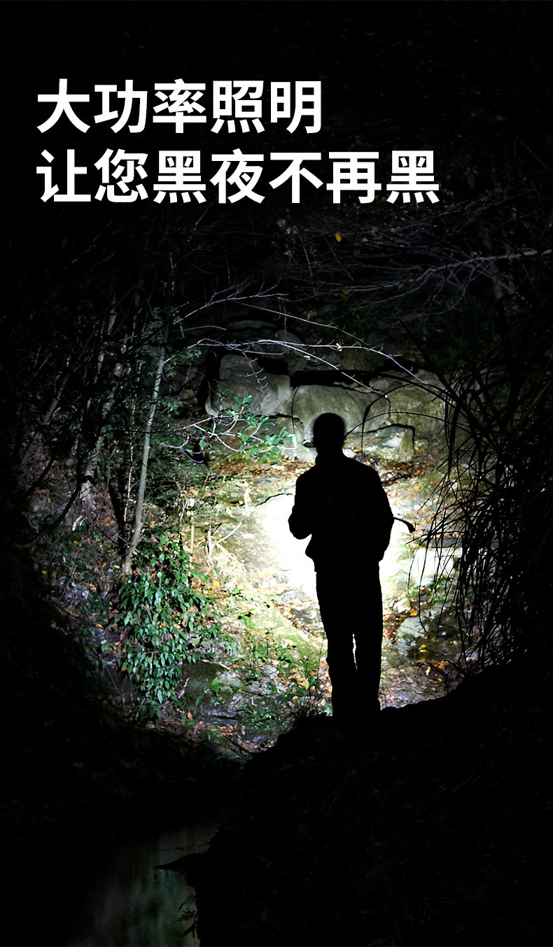 亮灯模式:长按开关键进入: 强光,中光,弱光,爆闪,关。双击感应模式