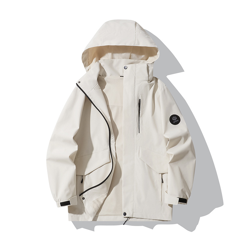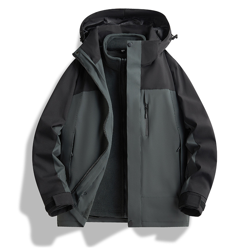 メンズジャケット、スリーインワン取り外し可能な防風防水アウトドアルーズ通気性登山ジャケット、レディースジャケット、トレンディ
