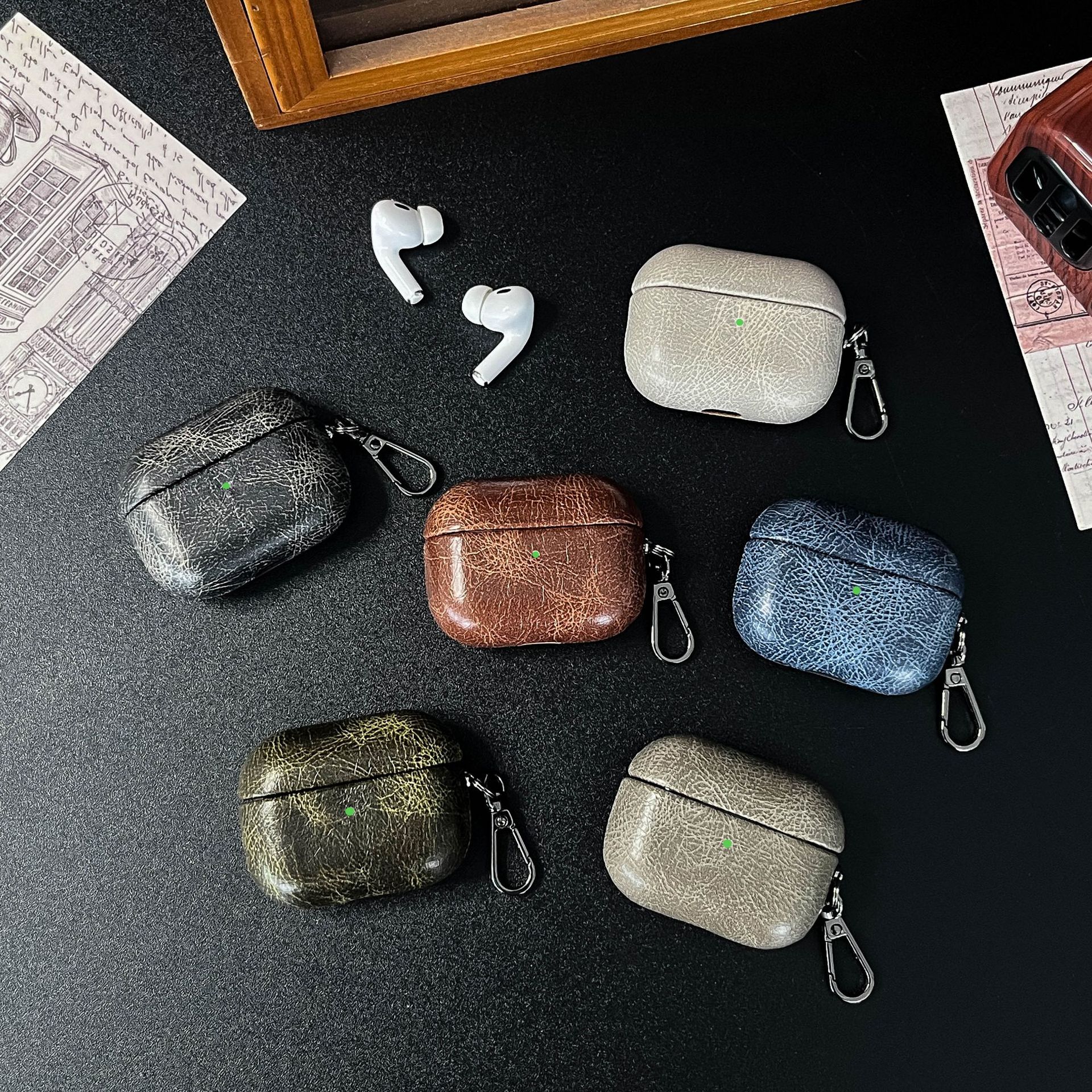 アップルエアポッドプロ2油皮レトロ皮pu模造皮リンゴ3世代純色イヤホン保護カバー