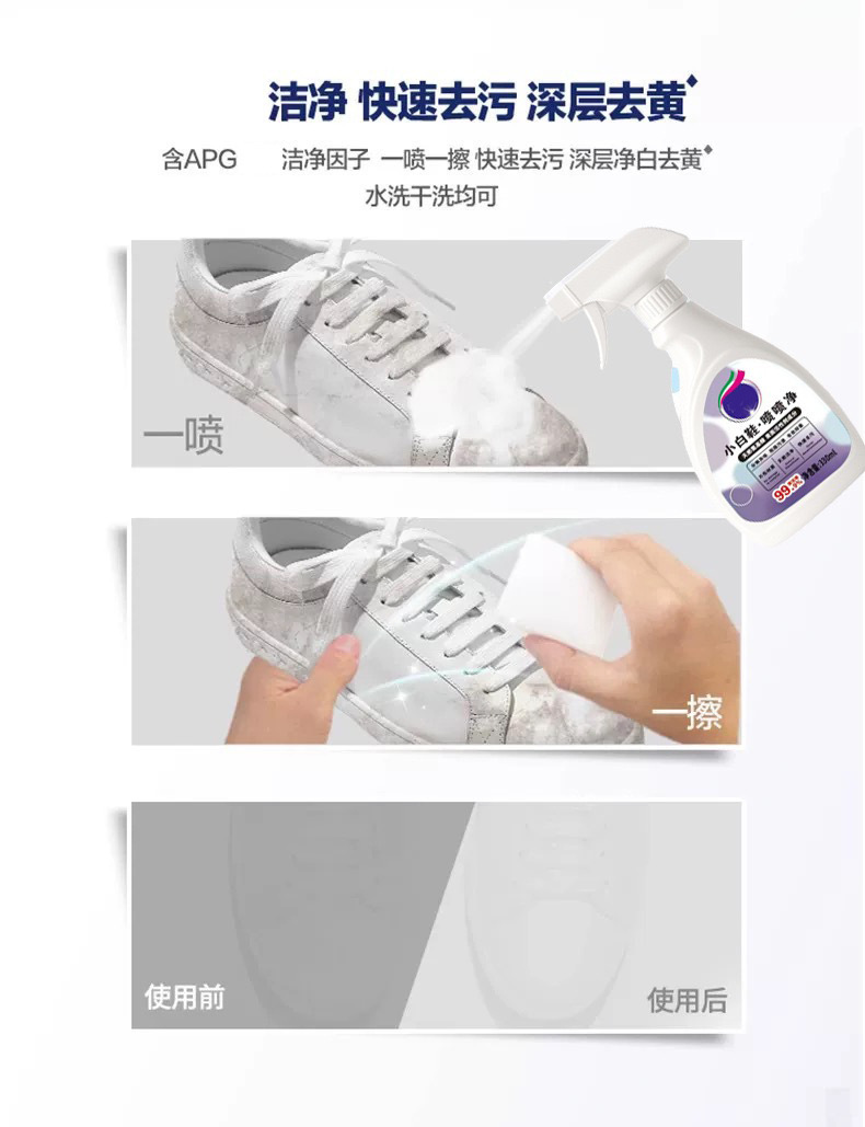小白鞋喷喷净小白鞋清洗神器强力去污免水洗刷鞋泡沫清洁剂厂家批
