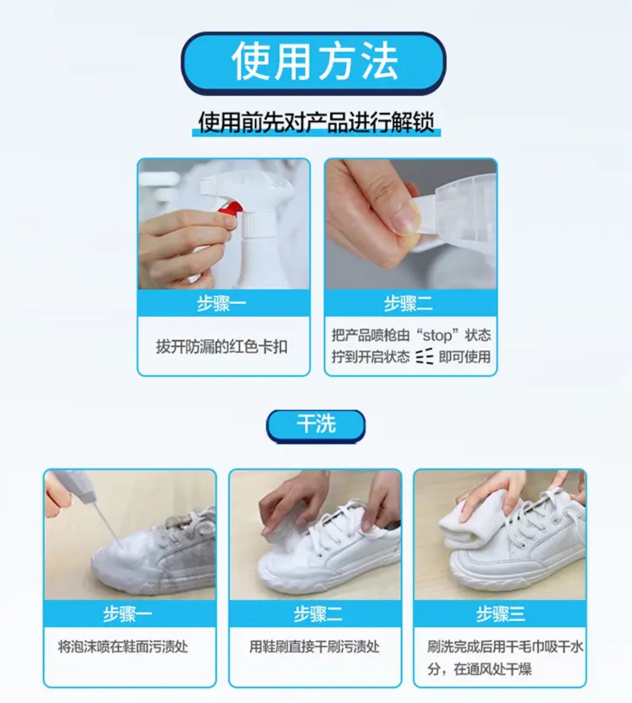 免刷洗小白鞋喷喷净小白鞋清洗神器强力去污免水洗刷鞋泡沫清洁剂