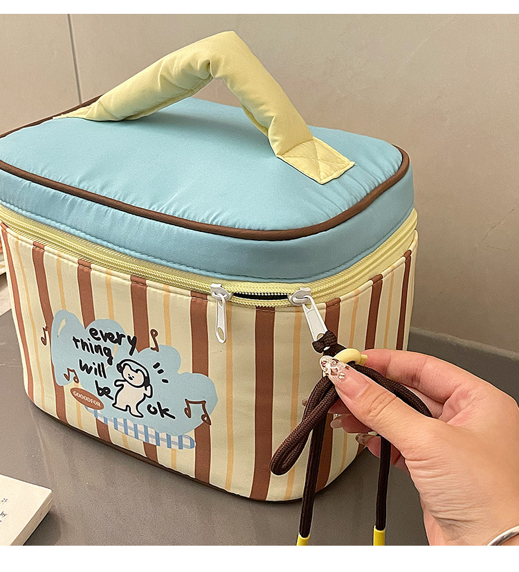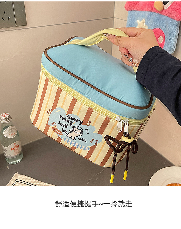 原创条纹小狗化妆包女大容量手提收纳包便携旅行护肤品洗漱收纳袋