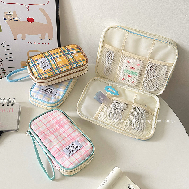 格纹散物收纳包多功能大容量便携数码包充电宝耳机充电器收纳袋