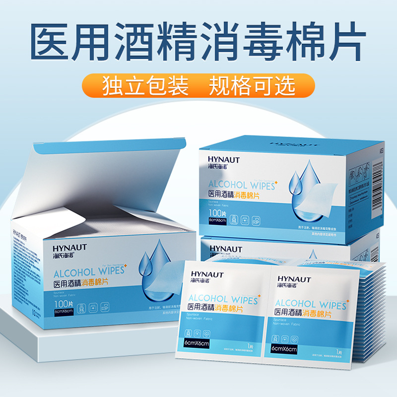 海氏海诺医用酒精消毒棉片75度一次性独包装酒精湿巾批发一件代发