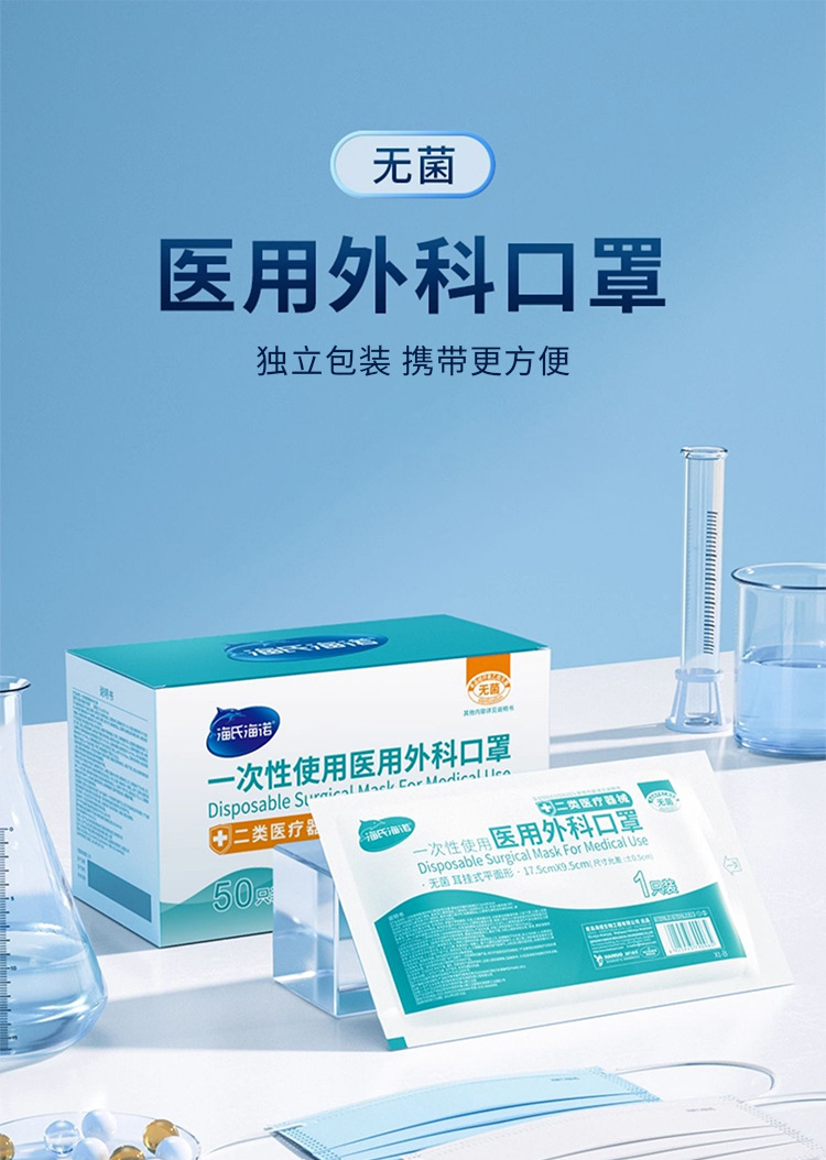 海氏海诺医用外科口罩灭菌级一次性医疗三层正品成人单独立包装