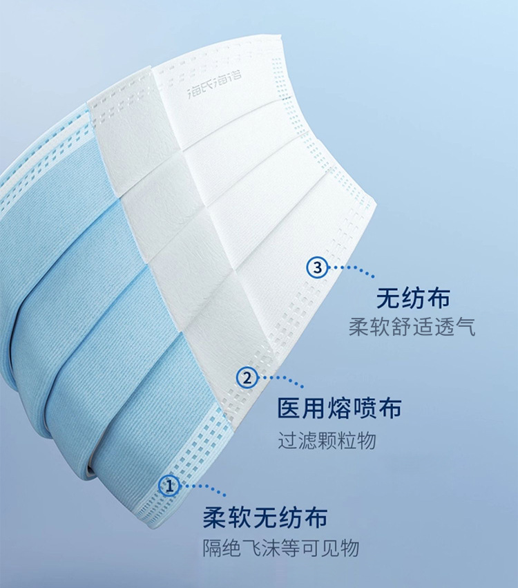 海氏海诺医用外科口罩灭菌级一次性三层防护成人白色透气医疗口罩