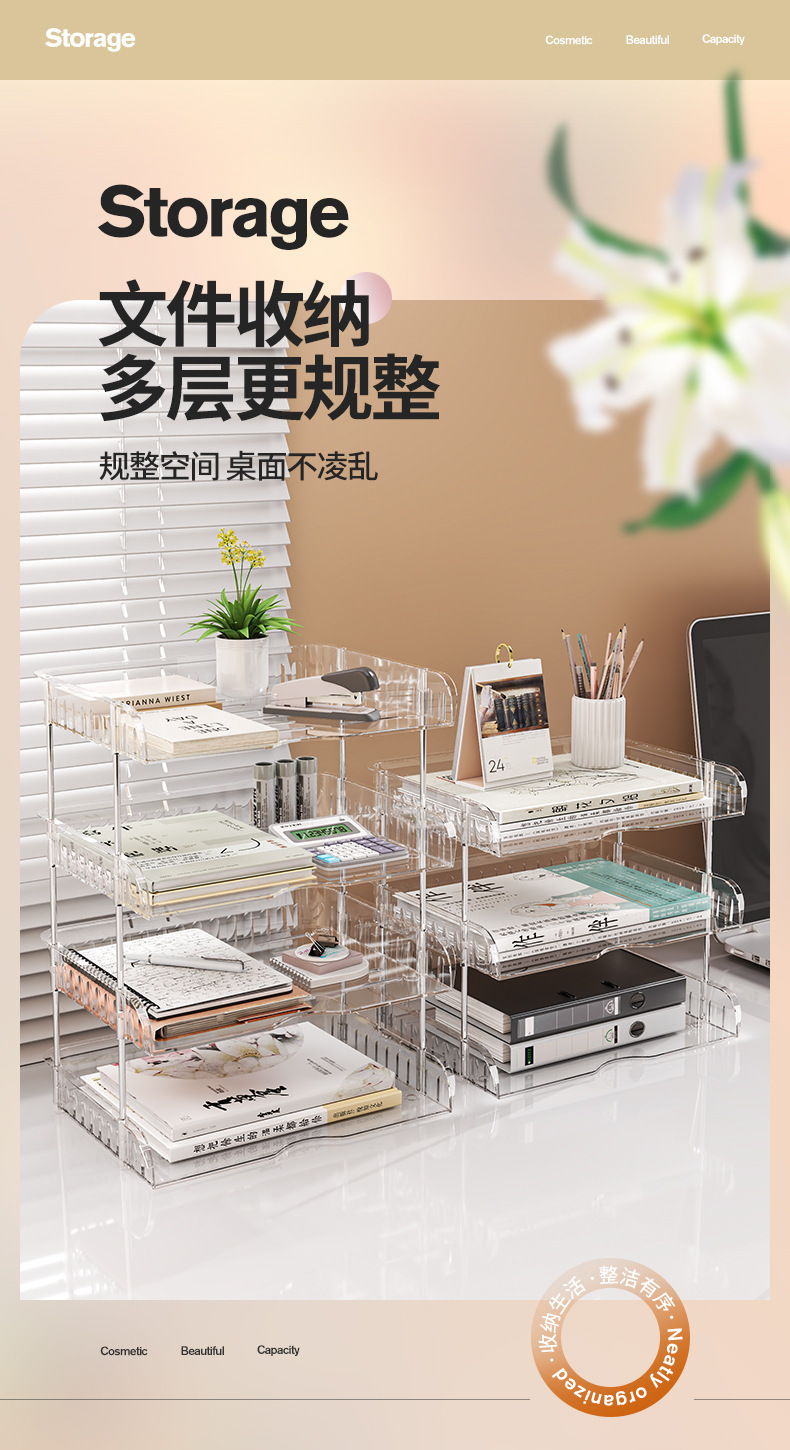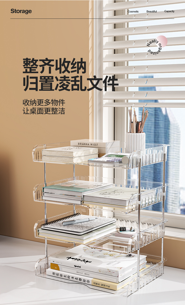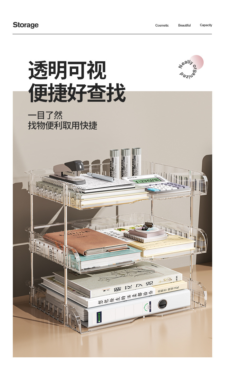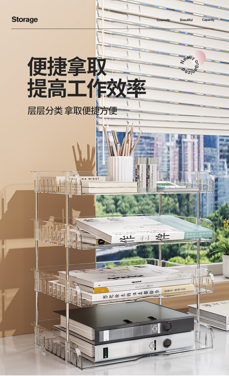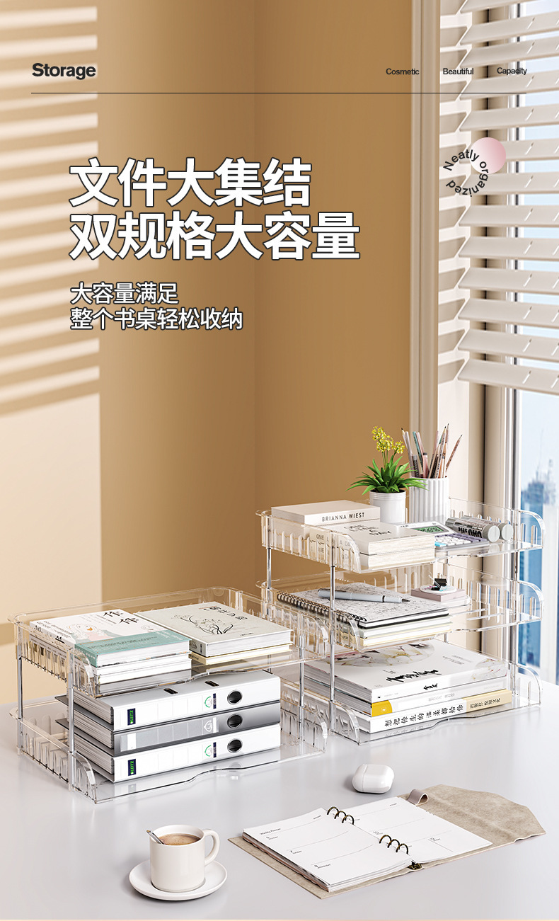 PET亚克力透明书桌收纳置物架分层书本收纳办公室文件收纳盒宿舍
