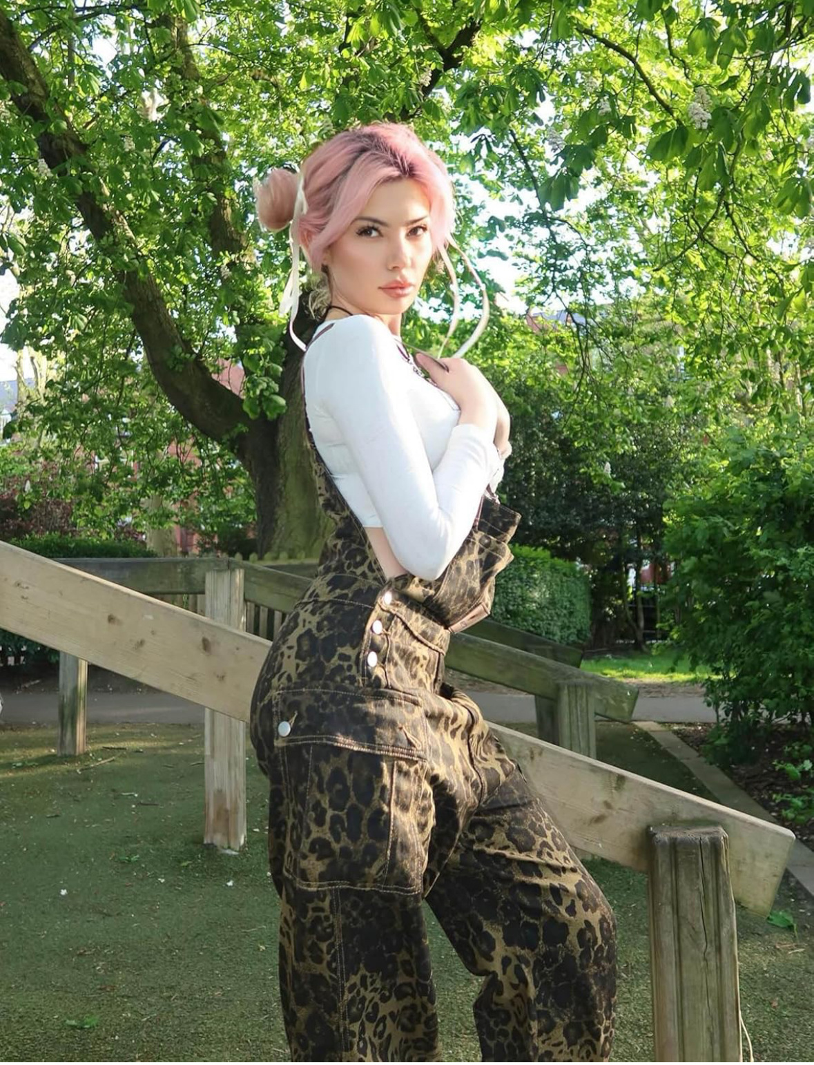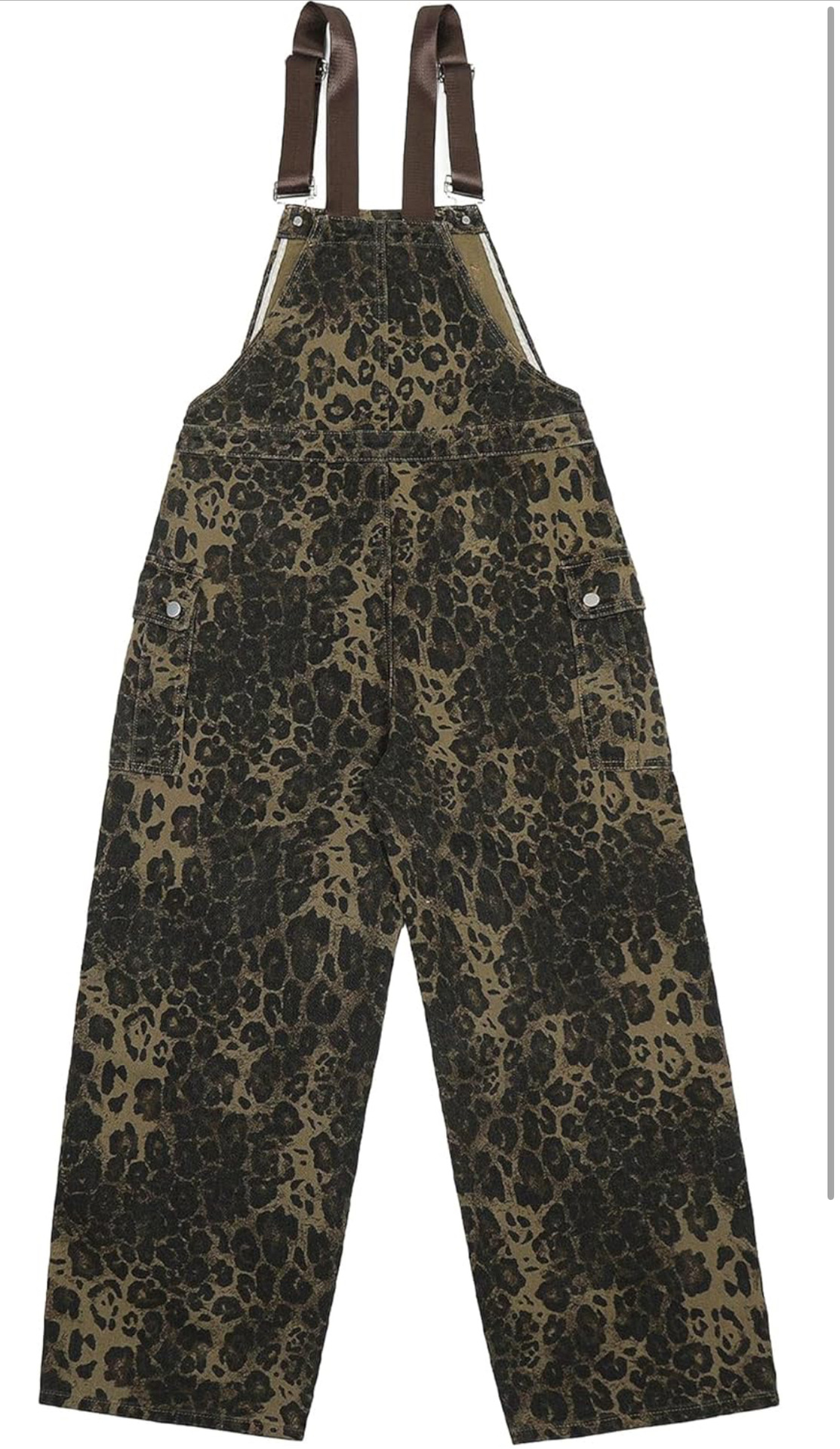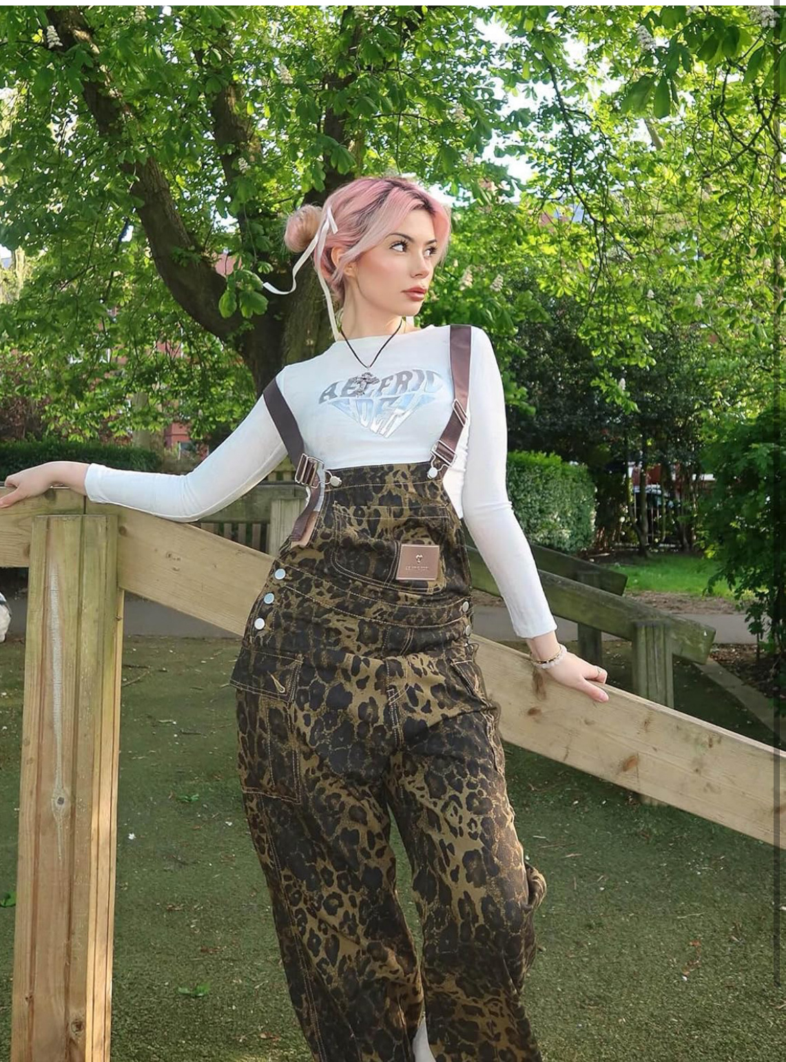 2025跨境亚马逊temu美式复古豹纹印花工装牛仔背带裤新款连体直筒