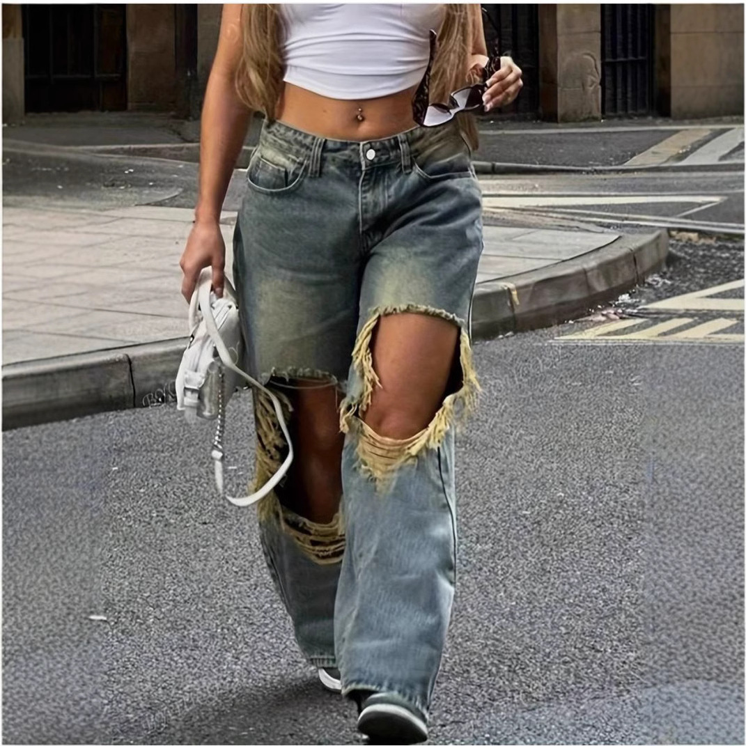 欧米2025国境を越えて、低腰のゆるいギャルのデニムパンツアマゾンが新しいジーンズを引きずる