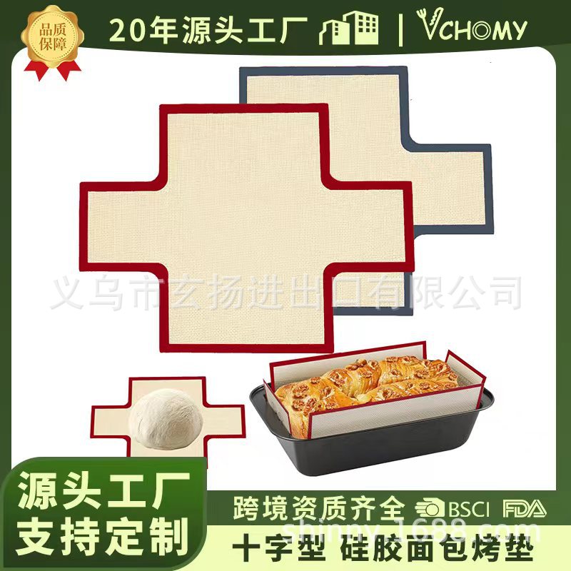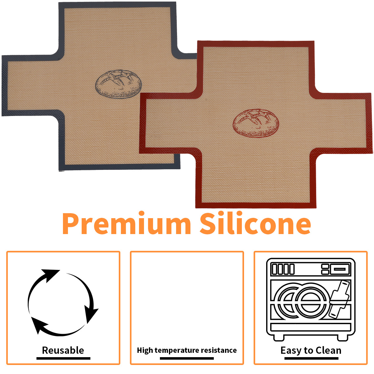 跨境硅胶烤垫十字形面包盘衬垫硅胶烘焙垫食品级不粘面包转移烤垫