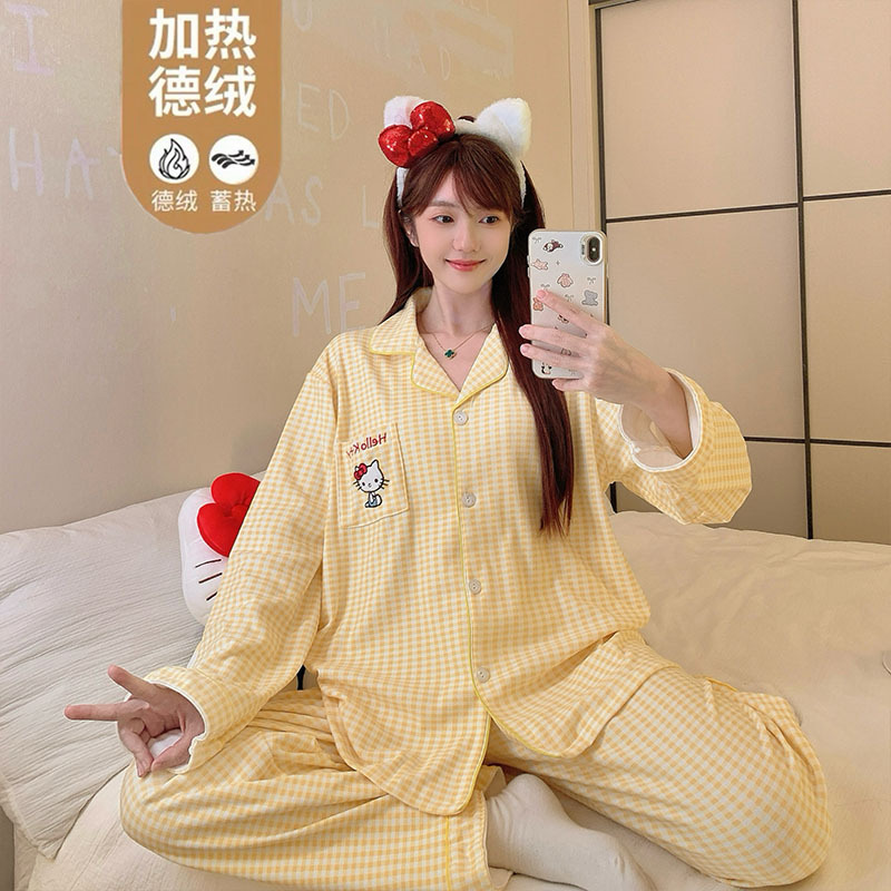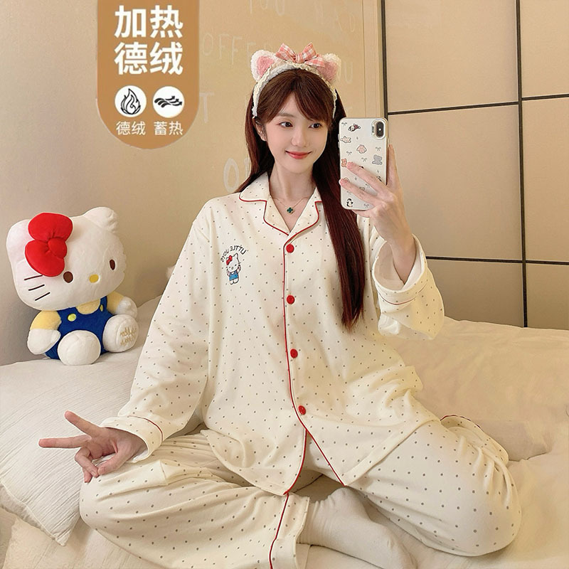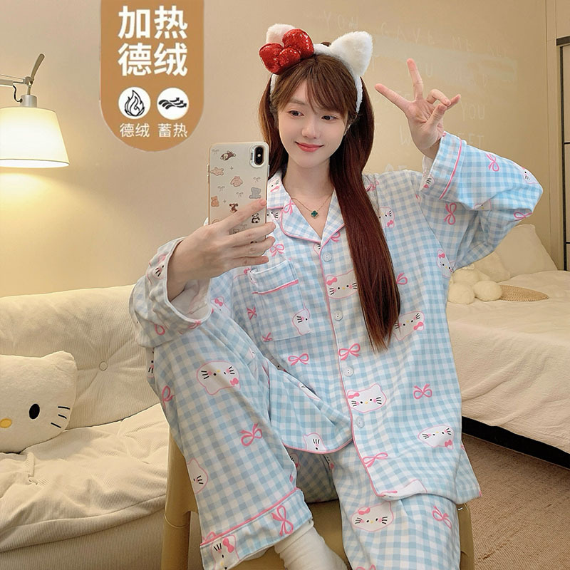 日系可爱insKT猫云朵棉睡衣女长袖春秋季可爱学生外穿家居服套装