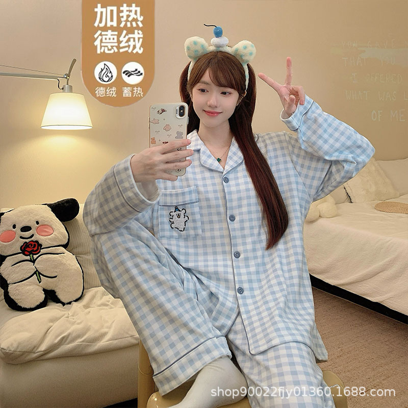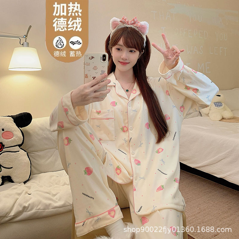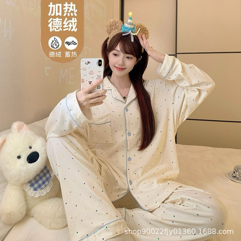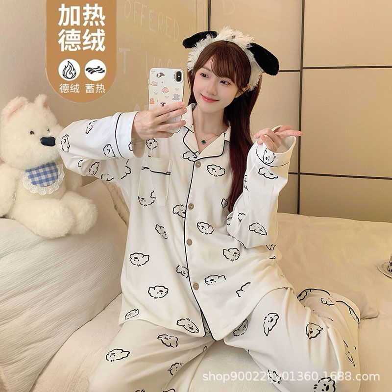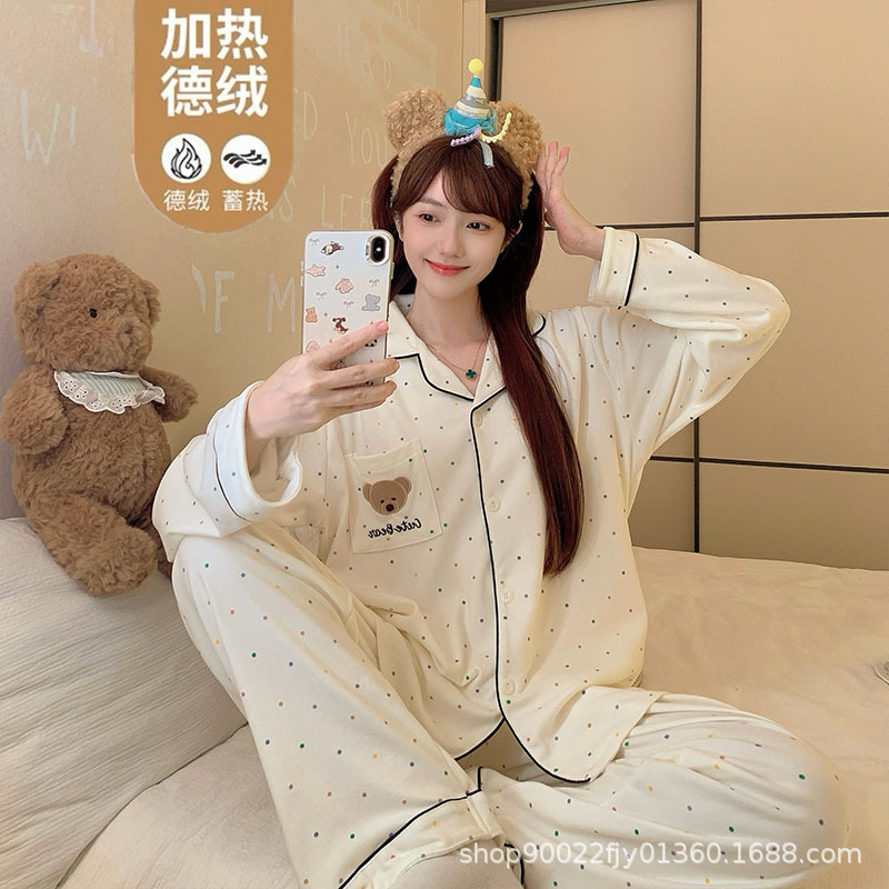 秋冬季女士德绒睡衣2025新款韩版卡通字母可爱开衫女生加厚家居服