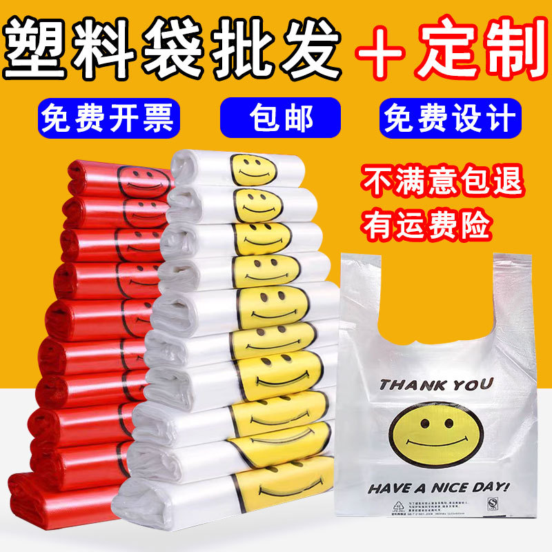 笑脸塑料袋批发加厚方便袋外卖食品包装购物打包背心手提袋子批发