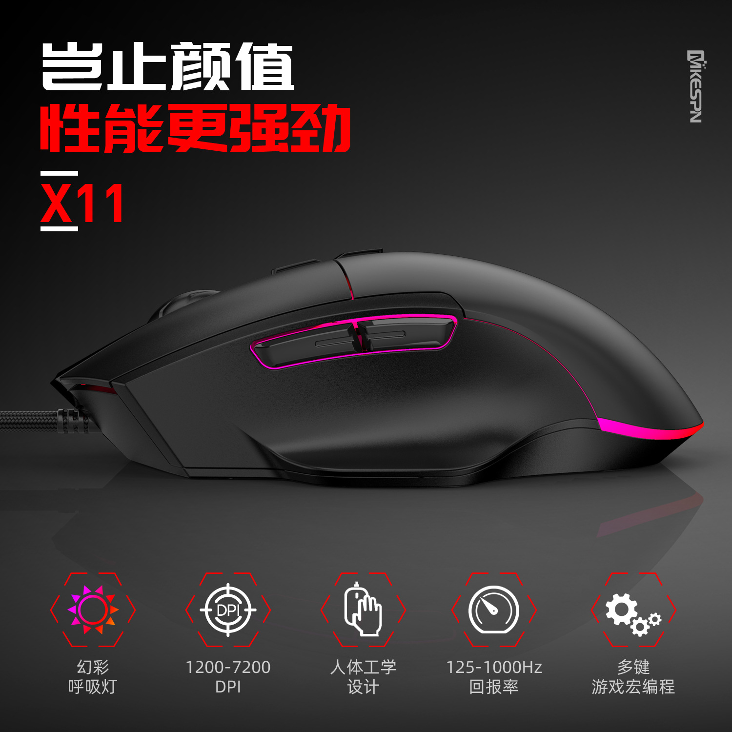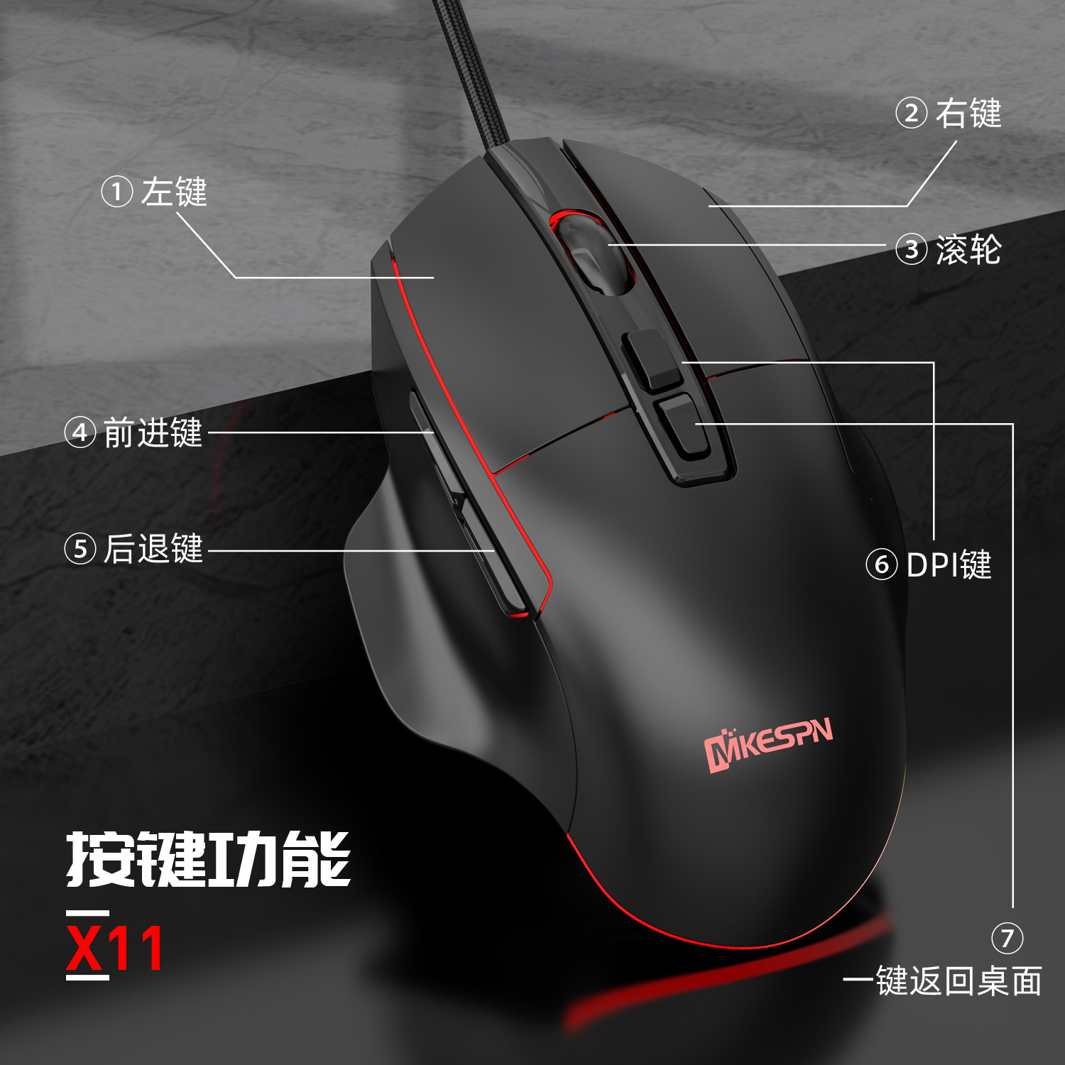 7200DPI全速七按键RGB有线宏定义游戏鼠标电脑配件一件起批usb