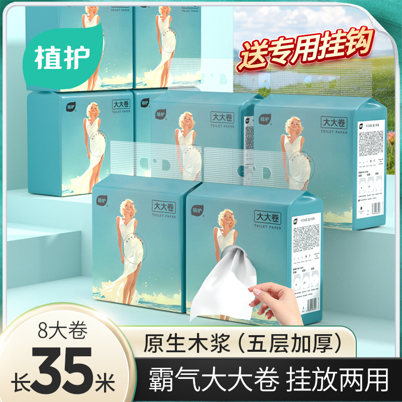 植护卷纸卫生纸大卷6卷/箱卷筒纸实惠装家用悬挂式抽取5层大量批