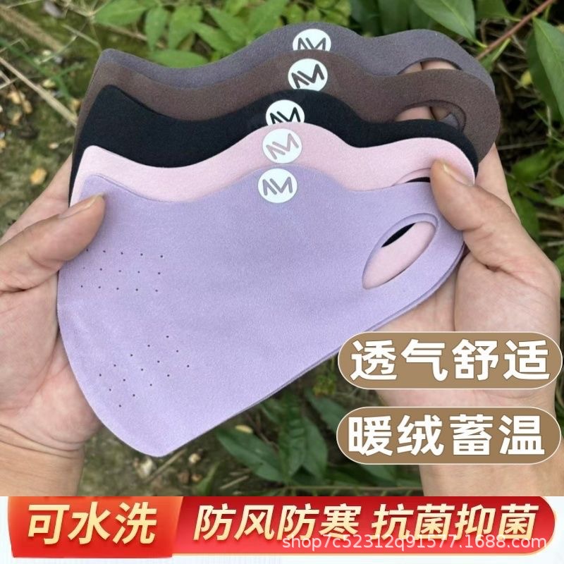 秋冬季澳绒保暖口罩磨毛拼接男女高颜值冬季防风面罩无痕澳绒口罩
