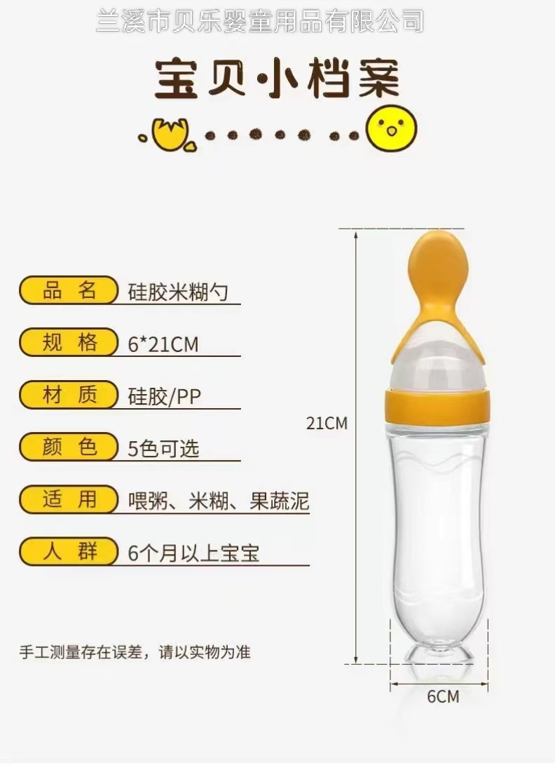 材质:瓶身硅胶 ,勺头是PP材质