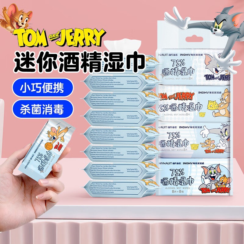 海氏海諾ミニアルコールウェットティッシュ75度殺菌消毒ウェットティッシュ綿片小包装携帯携帯8/包