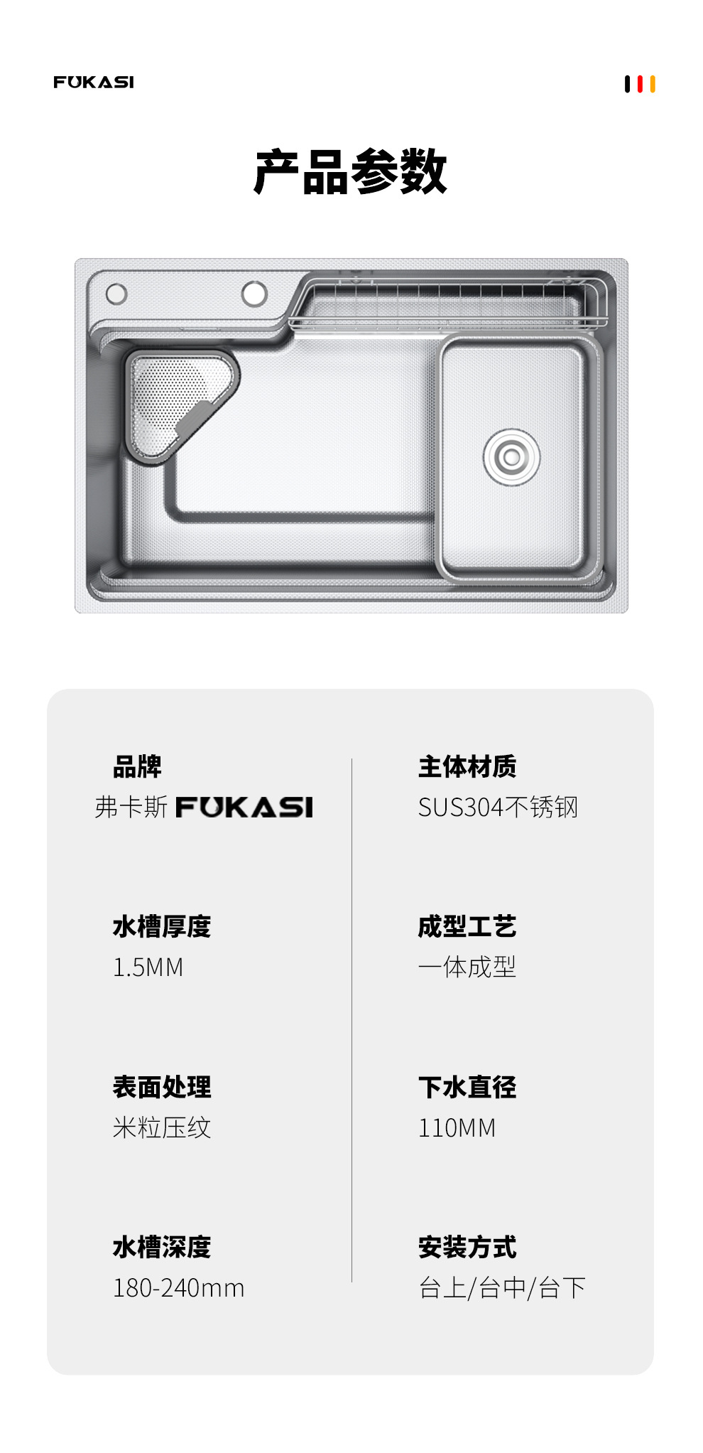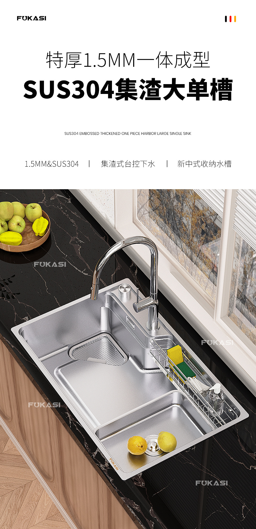 1.5MM厨房水槽大单槽SUS304不锈钢加厚水槽日式大单槽洗菜盆台下