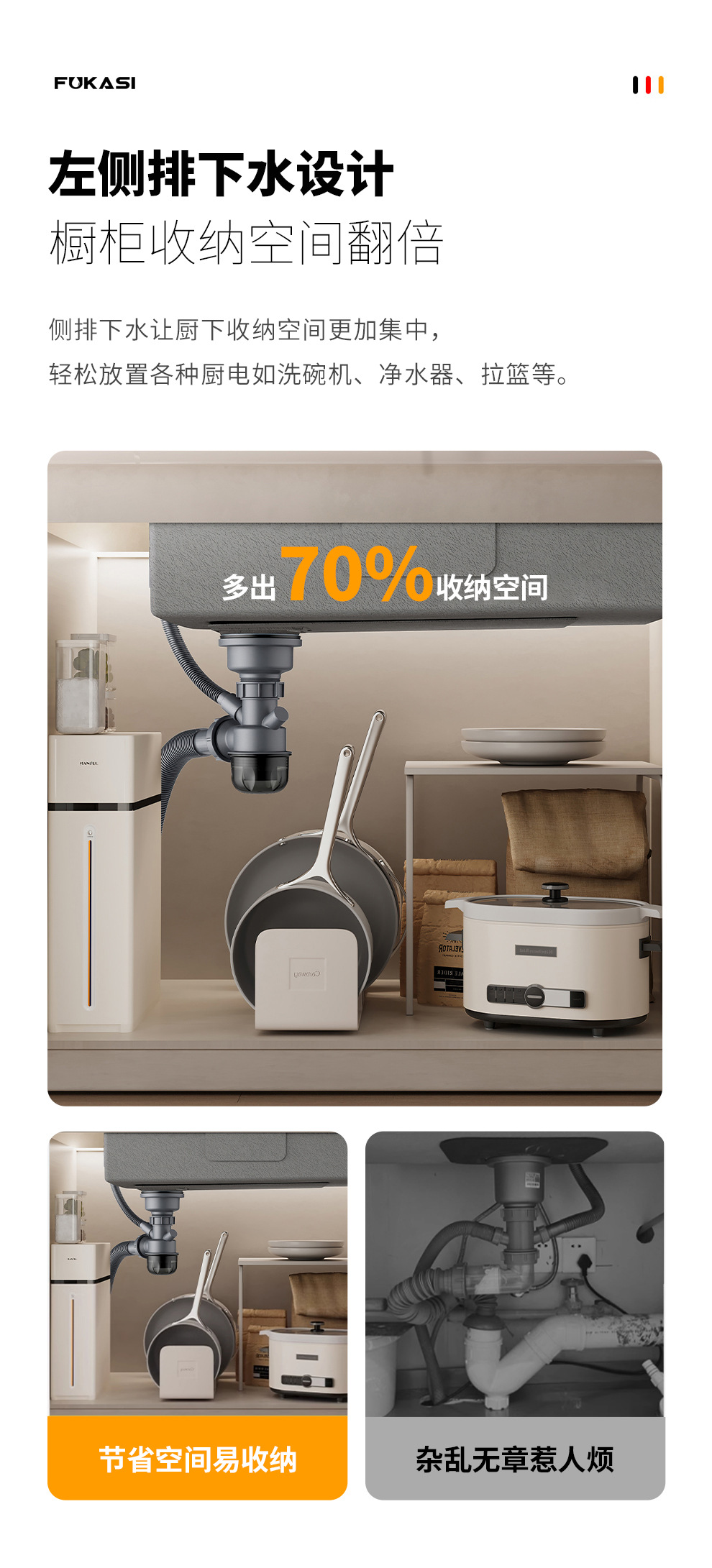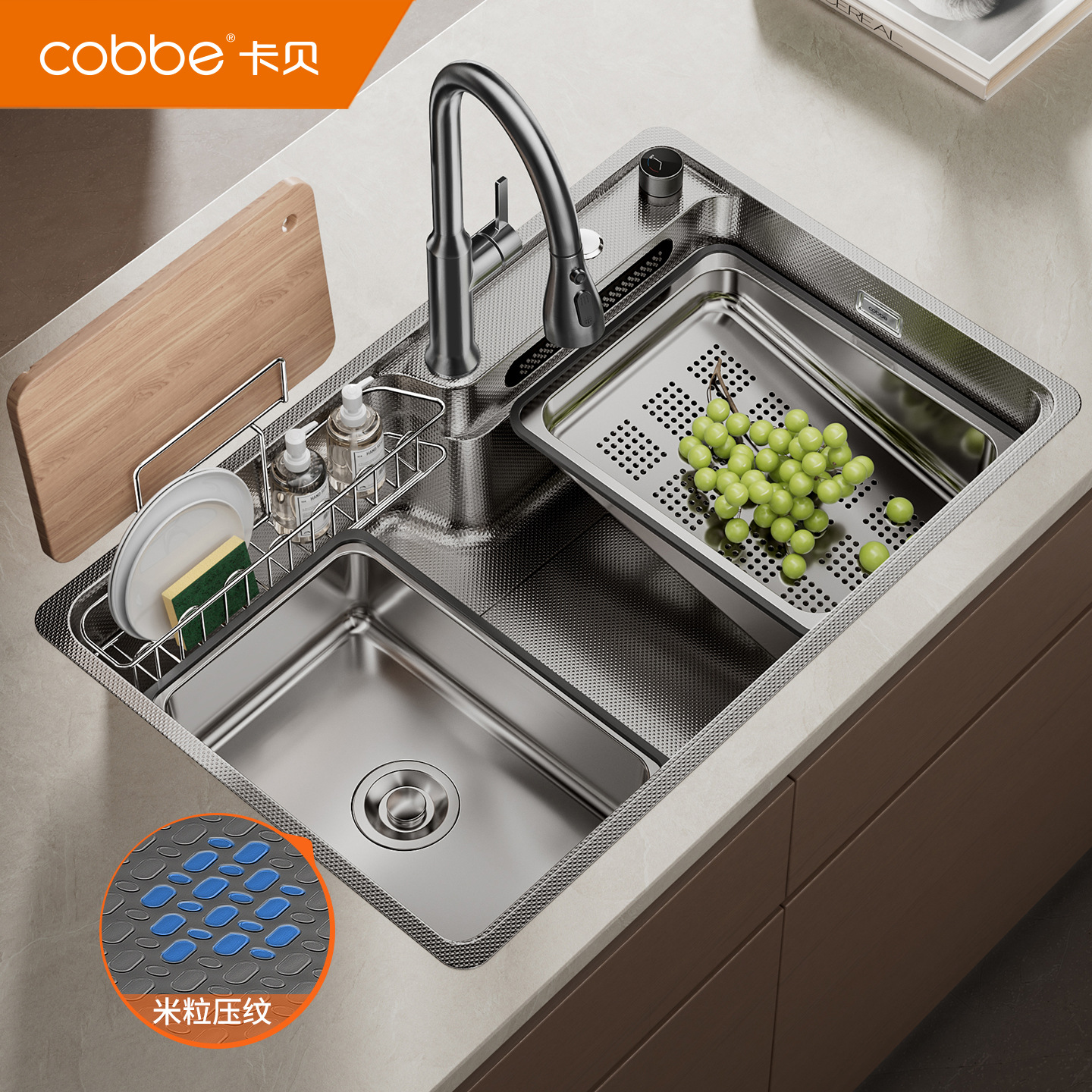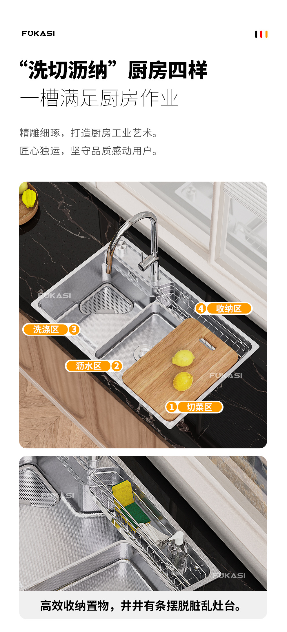品牌同款日式大单槽304不锈钢一体洗菜盆原色0涂层集渣洗碗池