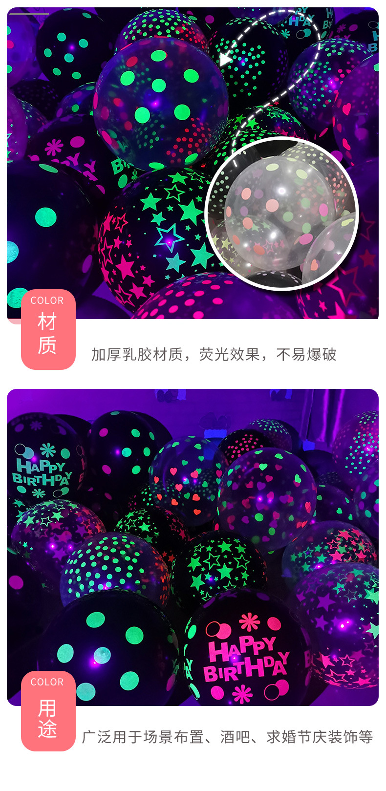 尺寸 荧光透明爱心,荧光黑球星星,荧光透明星星,荧光黑球波点,荧光透明波点,荧光黑球生日,荧光透明生日,荧光黑球小波点,荧光透明小波点,荧光黑色星月,荧光多款混搭