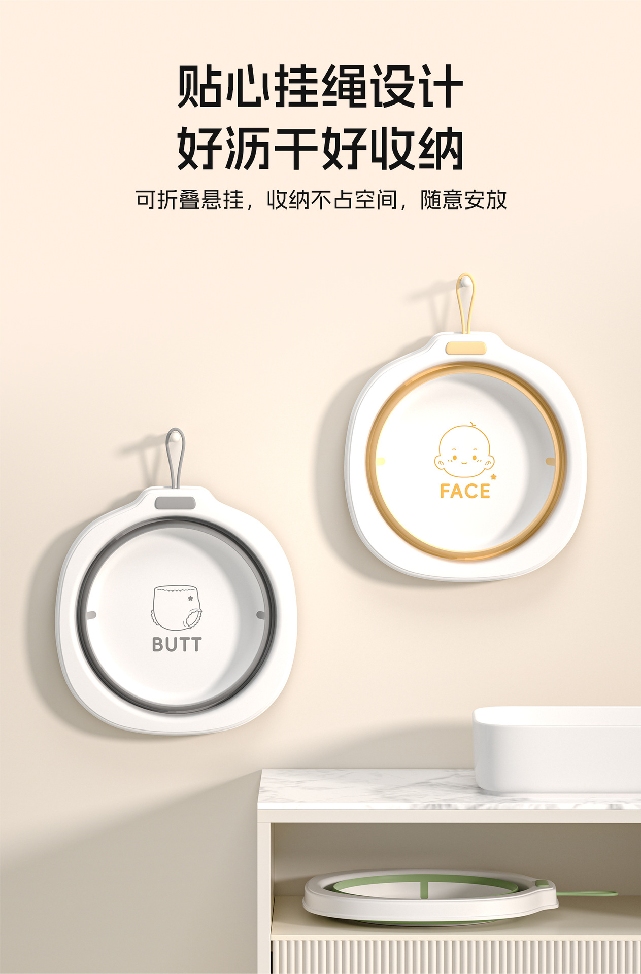 可折叠洗脸盆宝宝儿童可用便携式宿舍家用加厚可悬挂洗脸洗脚盆子