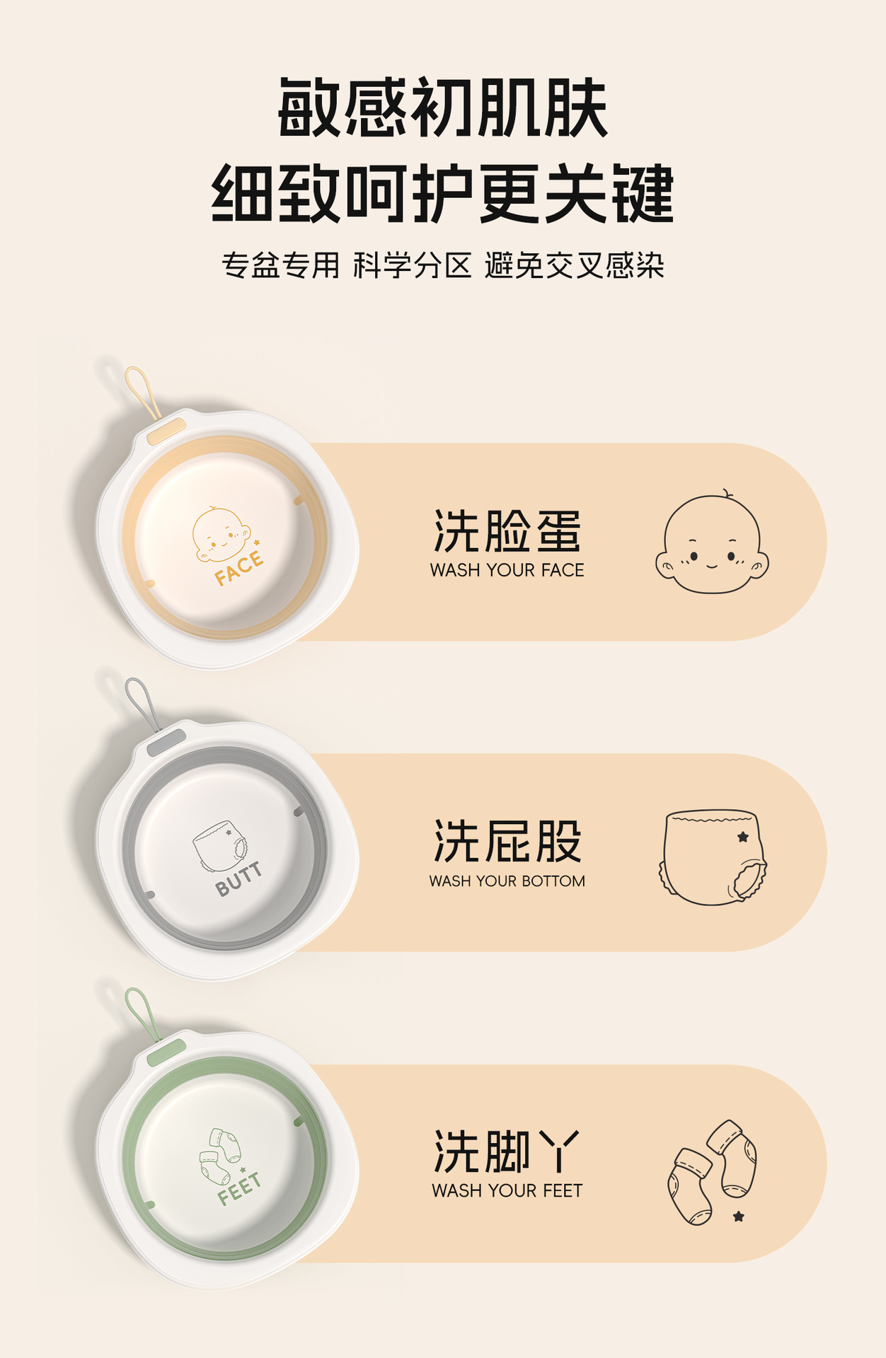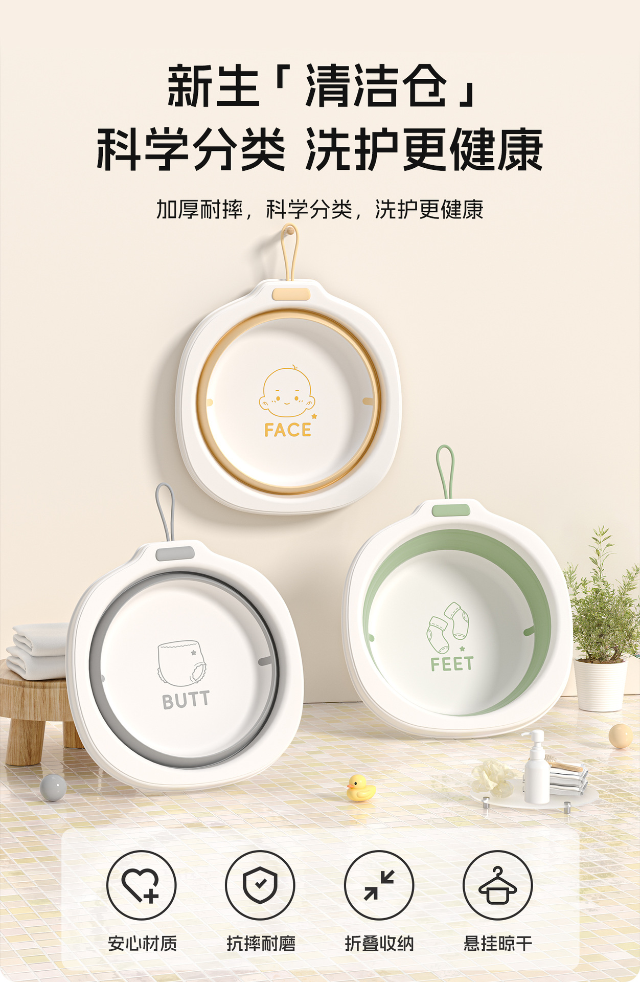 儿童可折叠洗脸盆新生儿便携式面盆宝宝加厚塑料盆家用婴儿小盆子