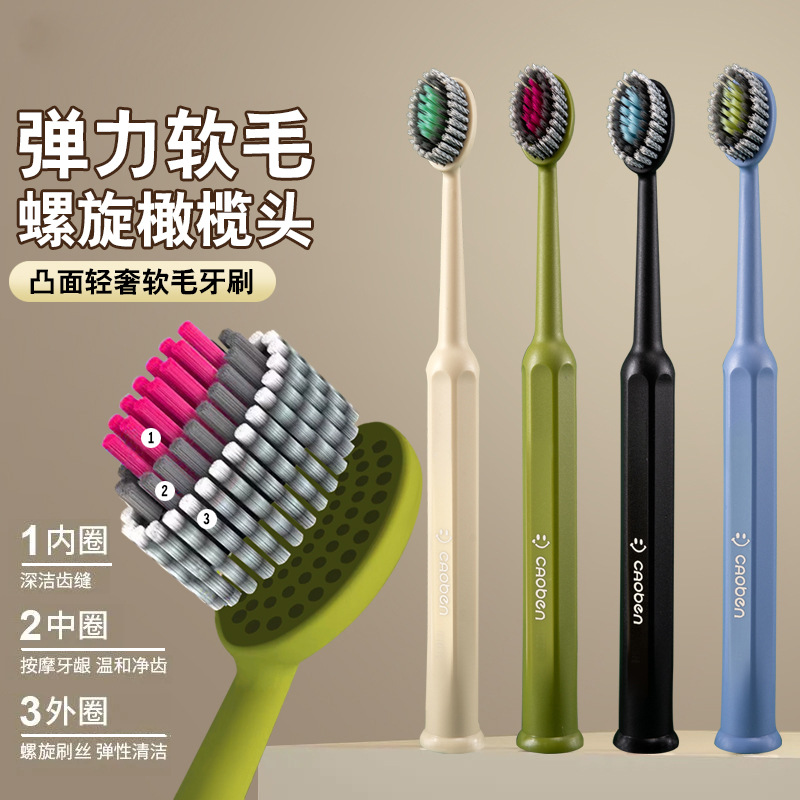 【2支装】螺旋毛山型宽头凸面牙刷家用情侣轻奢罗马柱高颜值手柄