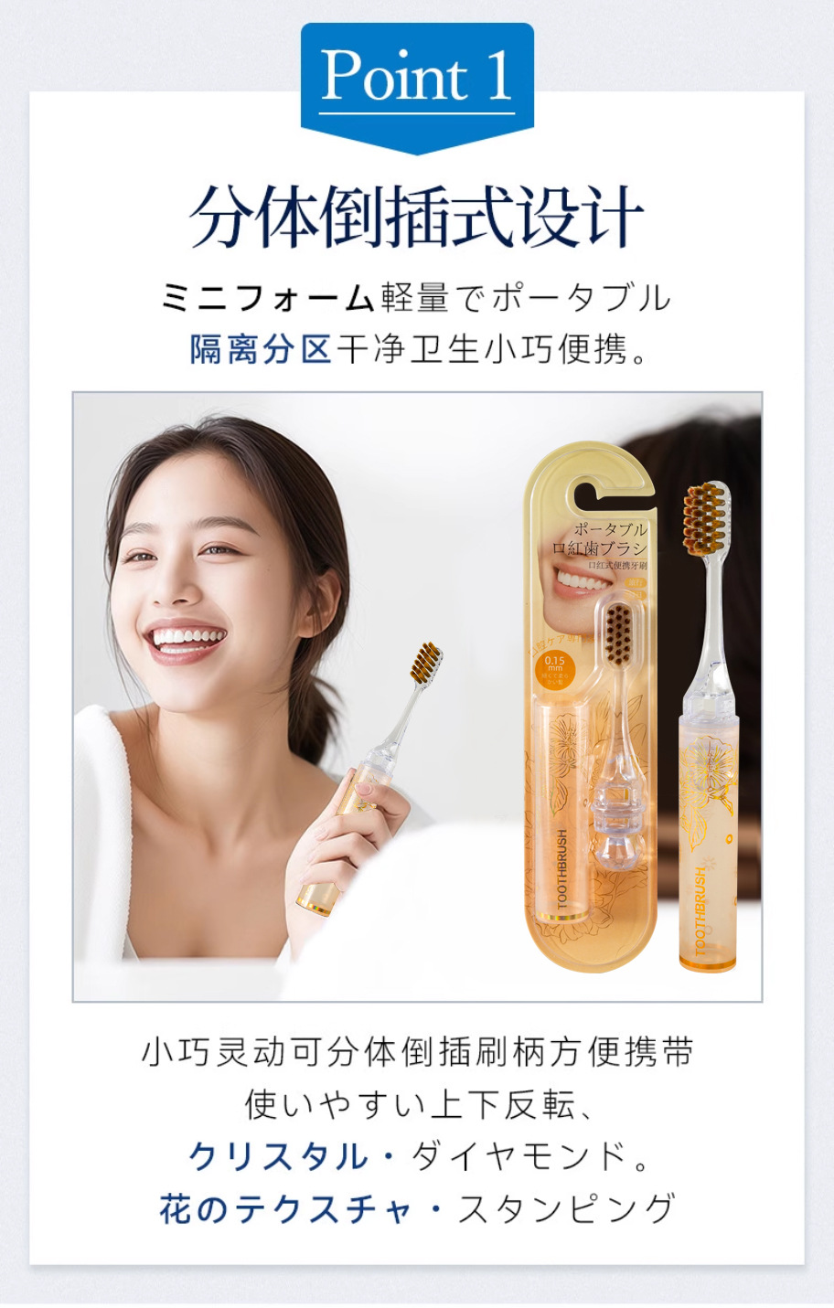 日系高档便携式软毛口红管牙刷成人护龈洁齿出差旅行家用适用
