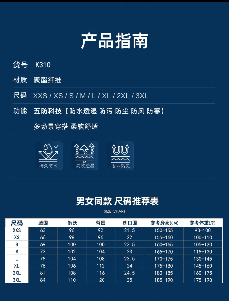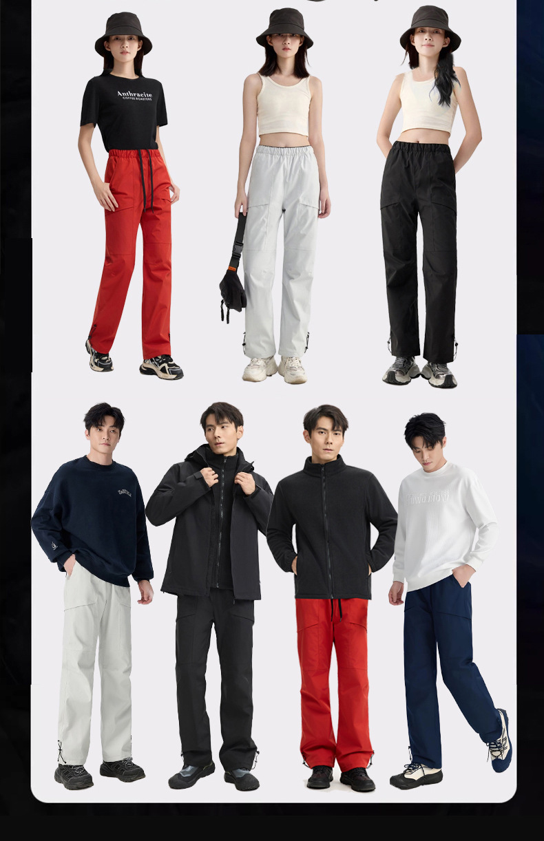 黑色,藏青色,灰白色,朱雀红,丁香紫,火龙果,男女同款 请参考尺码表,【有配套的冲锋衣,需要请联系客服】