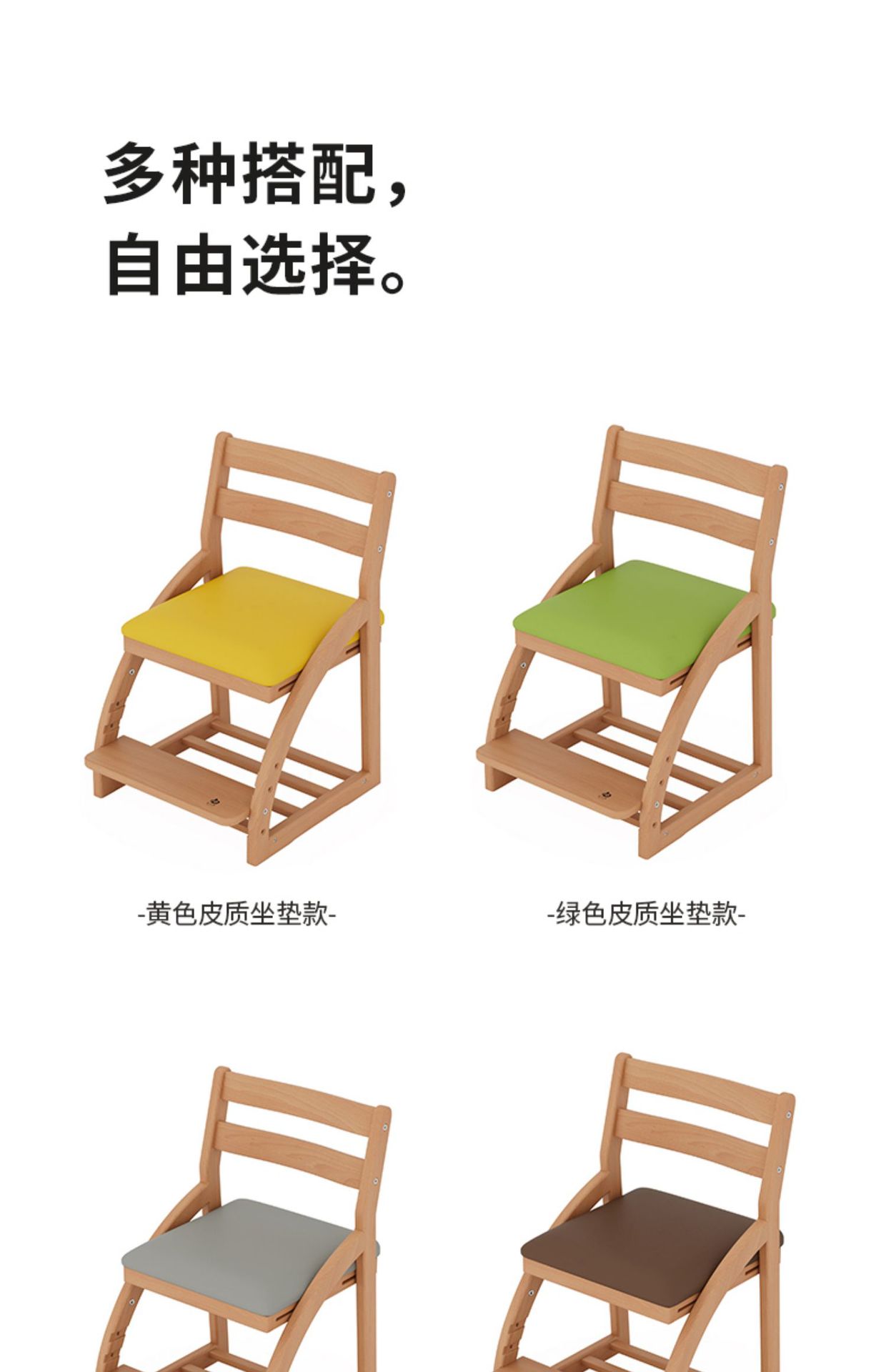 颜色 01_黄色皮质坐垫款,02_绿色皮质坐垫款,03_灰色皮质坐垫款,04_粉色皮质坐垫款,05_蓝色皮质坐垫款,06_白色皮质坐垫款,07_棕色皮质坐垫款,实木坐板款